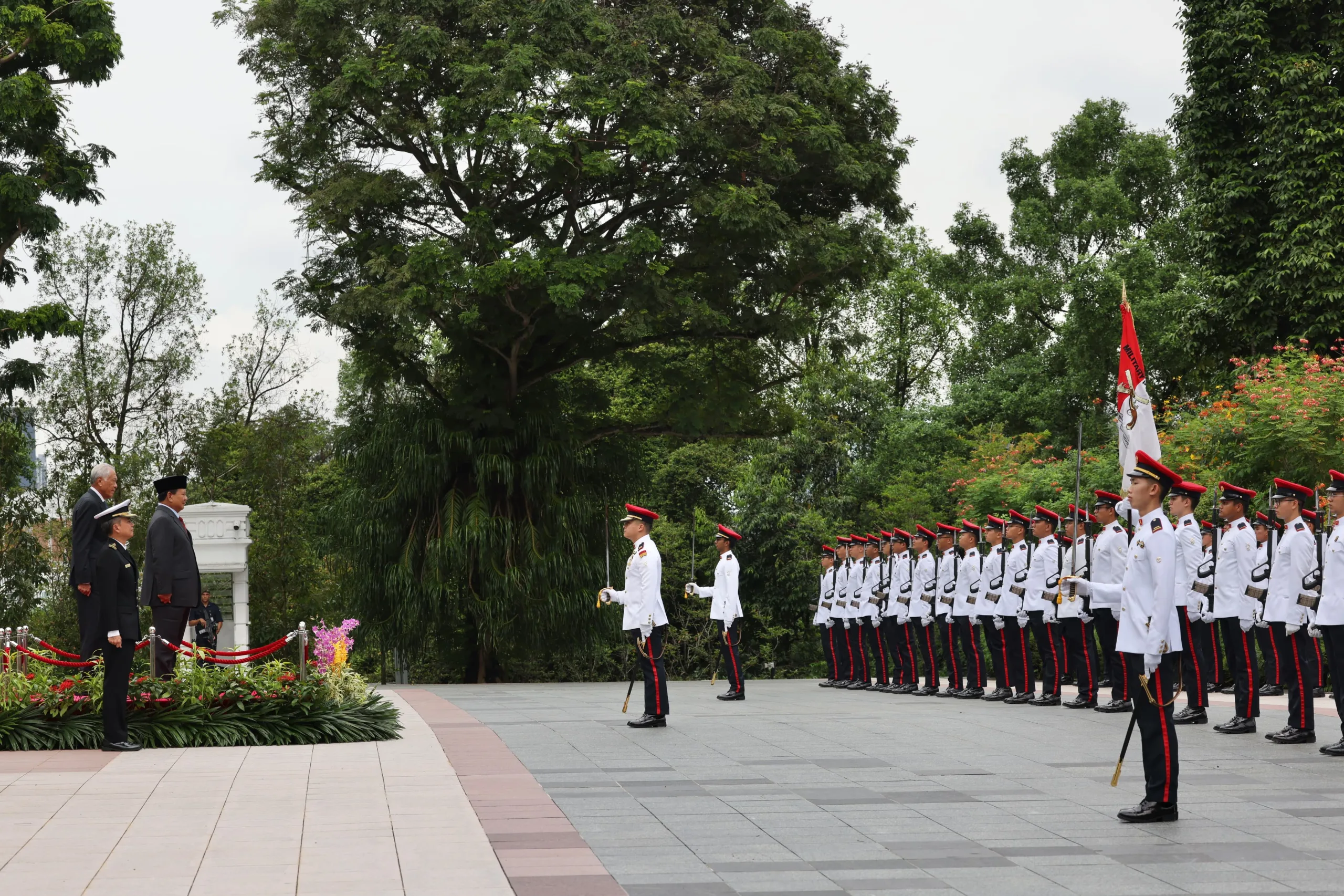 Prabowo tiba di Istana Kepresidenan Singapura pukul 12:30 waktu setempat. Kedatangan Prabowo disambut langsung oleh Menhan Ng Eng Hen dengan upacara jajar kehormatan.