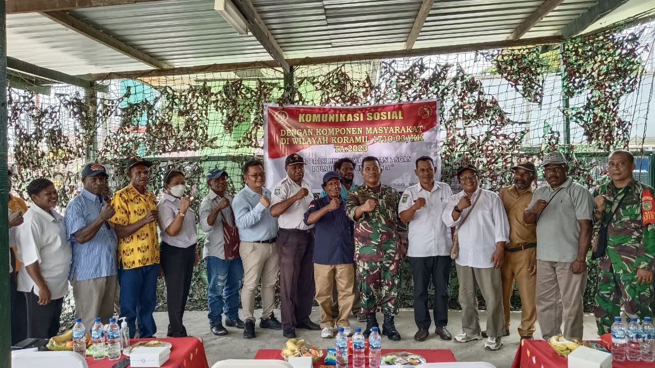 Timika – Dalam rangka meningkatkan Kemanunggalan TNI dengan Rakyat, Koramil 1710-03/Kuala Kencana Kodim 1710/Mimika, menggelar Komunikasi Sosial (Komsos) bersama Komponen Masyarakat (Kommas), di Makoramil Kuala Kencana, Distrik Kuala Kencana, Kab. Mimika, Rabu (22/11/2023).