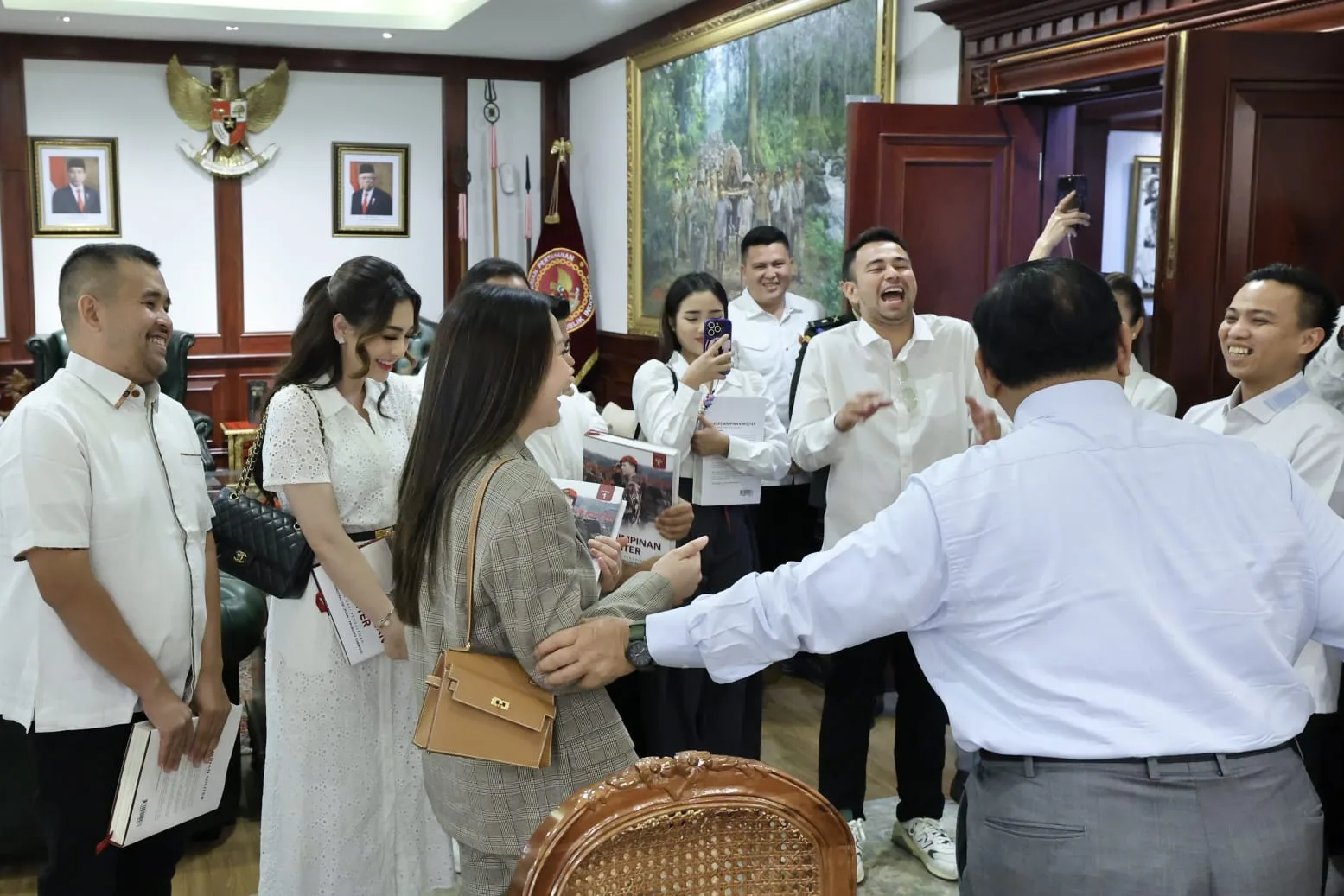 Raffi, Nagita, dan Cipung berkunjung dan bersilaturahmi dengan Prabowo di Kantor Kementerian Pertahanan, Rabu (29/11/2023).