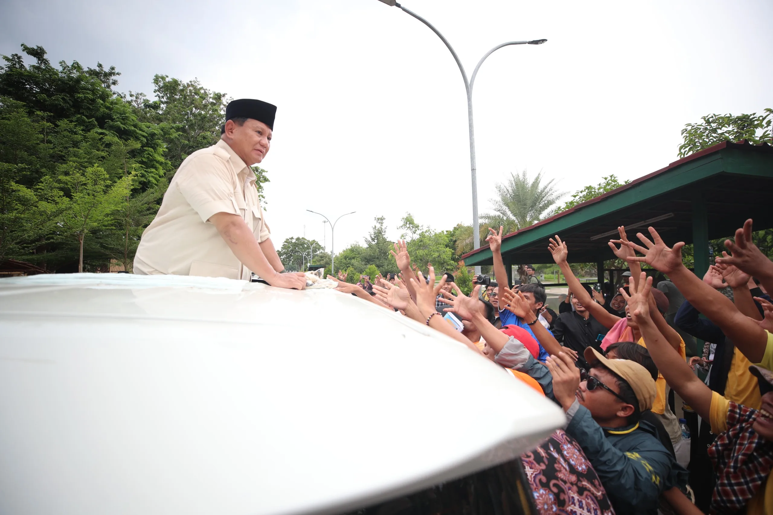 Dalam iring-iringan rombongan Capres Koalisi Indonesia Maju itu, masyarakat sekitar yang melewati sekitar jalan Pandeglang Banten seketika berhenti dan antusias menyapa Prabowo.