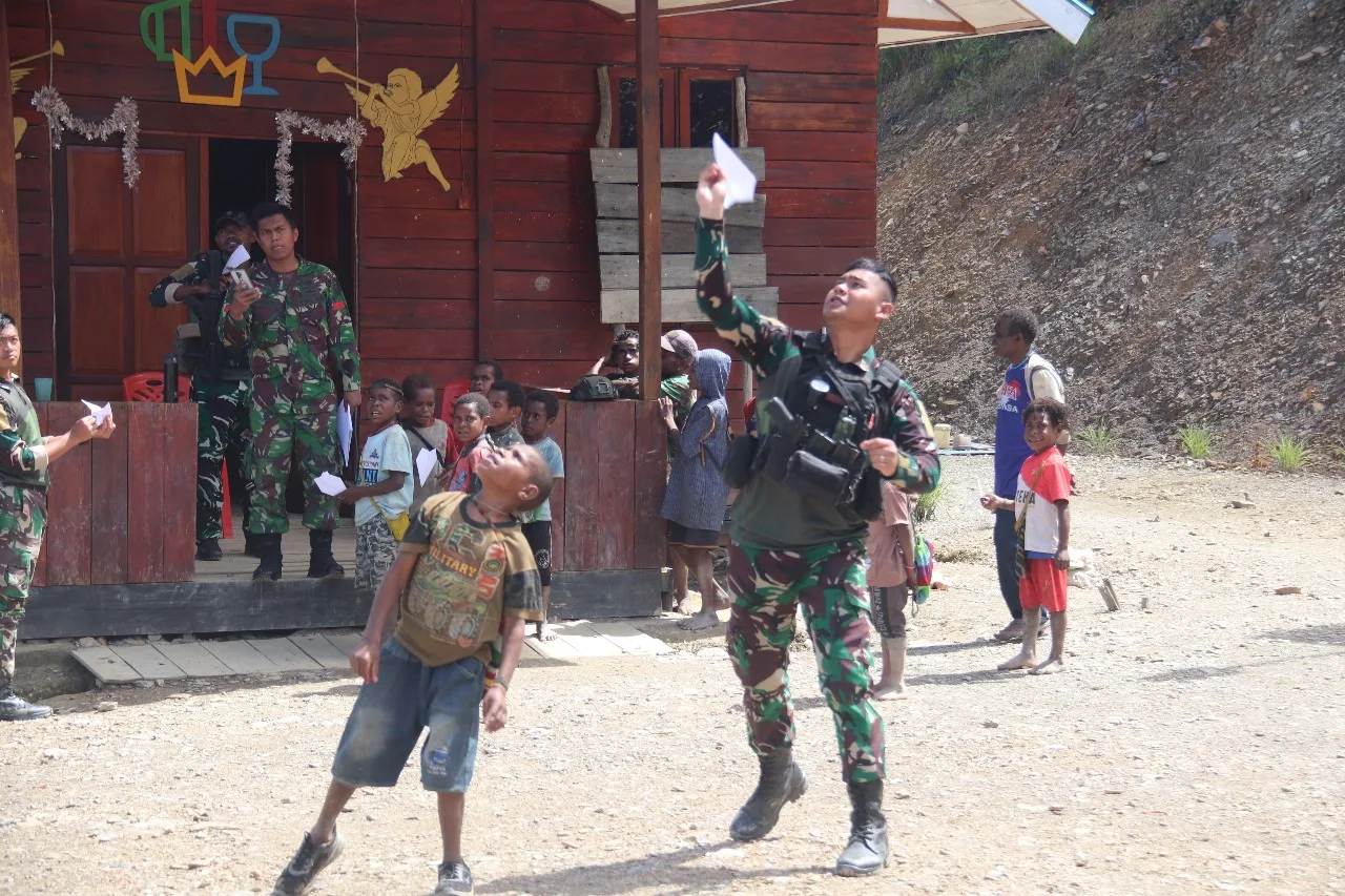 Intan Jaya – Peribahasa lintas generasi yang sering kita dengar adalah “Pesawat kertas.” Peribahasa ini mengajarkan kita tentang arti keberanian, impian dan bagaimana menghadapi tantangan dalam hidup. Pesawat kertas adalah simbol dari keinginan untuk menggapai mimpi dan cita-cita. Satgas 330 memanfaatkan peribahasa ini sebagai entry point untuk memotivasi anak-anak di Kampung Bazemba, Kab. Intan Jaya, Papua Tengah untuk meraih cita-cita, pada Sabtu (09/12/23).