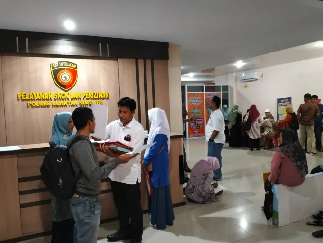 KUANSING – Pemohon pembuatan Surat Keterangan Catatan Kepolisian (SKCK) pada Rabu 27 Desember 2023 membludak di Polres Kuansing. Banyaknya pemohon pembuat SKCK di dominasi masyarakat yang mendaftar sebagai PPPK.
