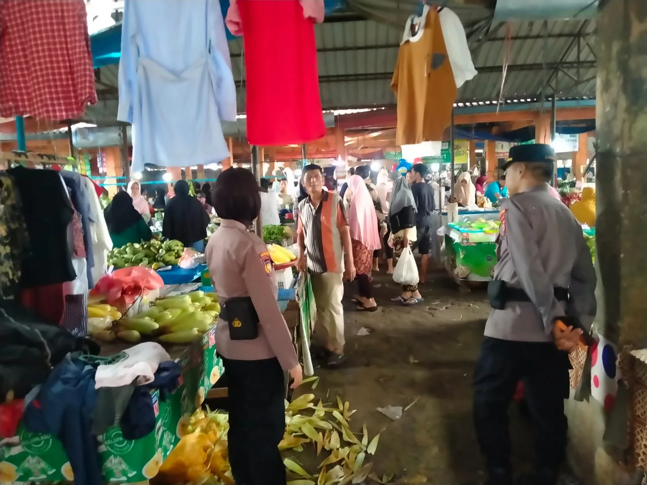 5 personel Satgas Preemtif Subsatgas Binmas Polda Riau dibawah pimpinan AKBP Raden Edi Saputra SAg yang didampingi Ipda Dedi Sutarmidi, Aiptu Erizal SH, Aiptu Sukardi SIP, Aiptu Sri Maryati SE menyambangi pedagang dan pengunjung pasar Pasar 50 Jalan Sultan Syarif Kasim, Pelabuhan Mawar