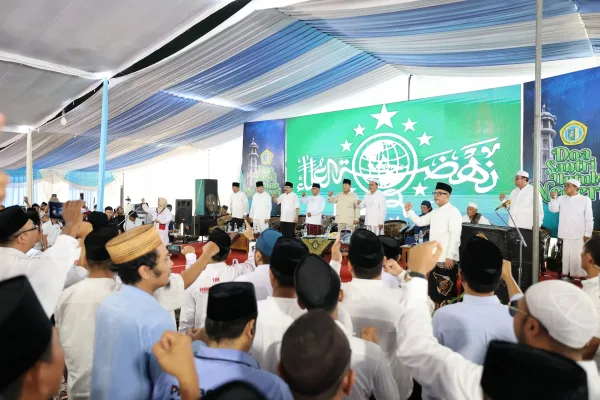 “Terima kasih, anak-anak santriwan-santriwati, suatu kehormatan besar bagi saya yang dianggap sahabat para santri. Memang benar, saya sebagai seorang prajurit dulu, memang sangat dekat dengan kiai dan ulama, sekali lagi terima kasih,” kata Prabowo.