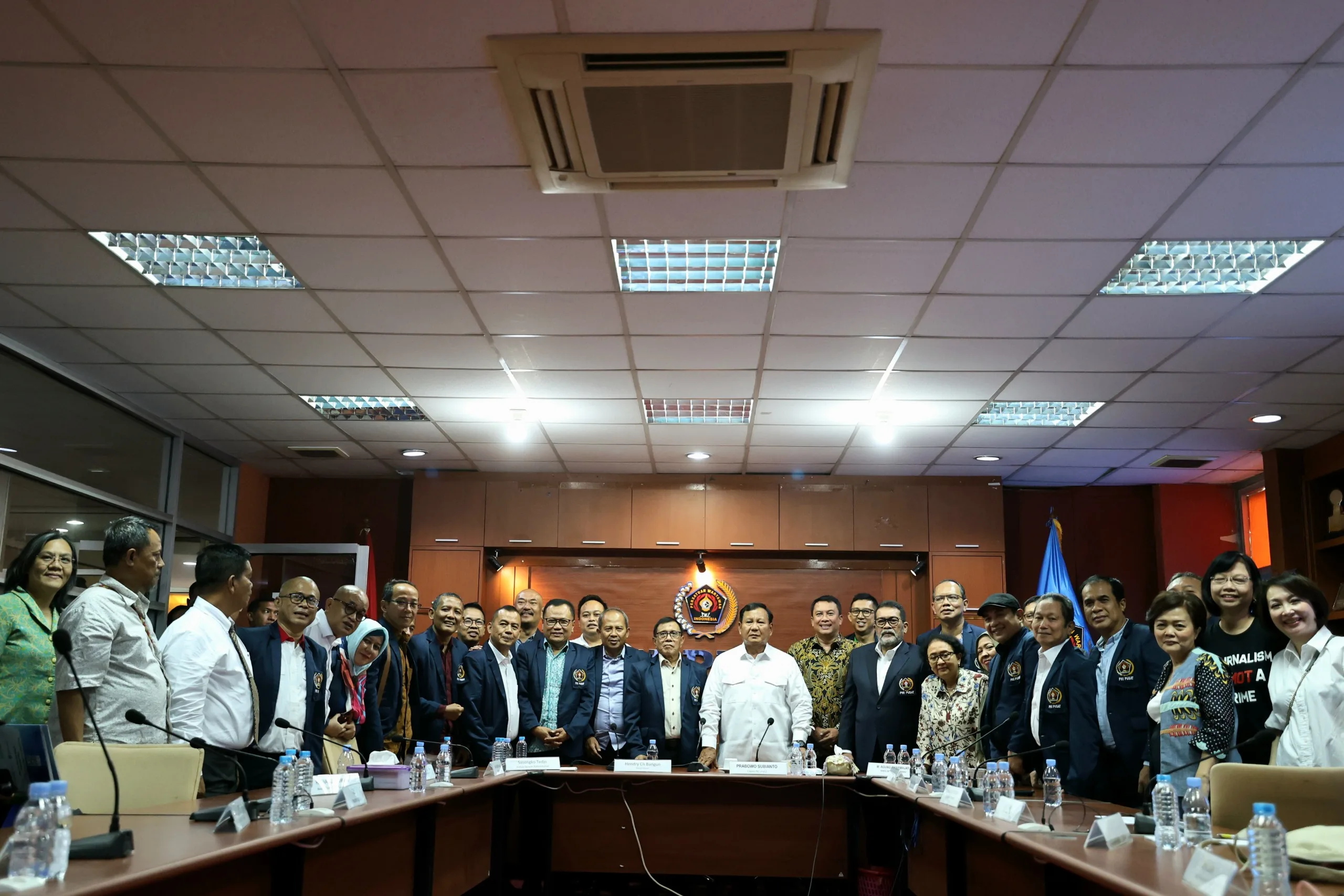Jakarta – Calon presiden nomor urut 2 Prabowo Subianto memenuhi undangan Persatuan Wartawan Indonesia (PWI) di acara Dialog Pers dan Capres yang digelar di Gedung Dewan Pers, Jakarta, Kamis (4/1).