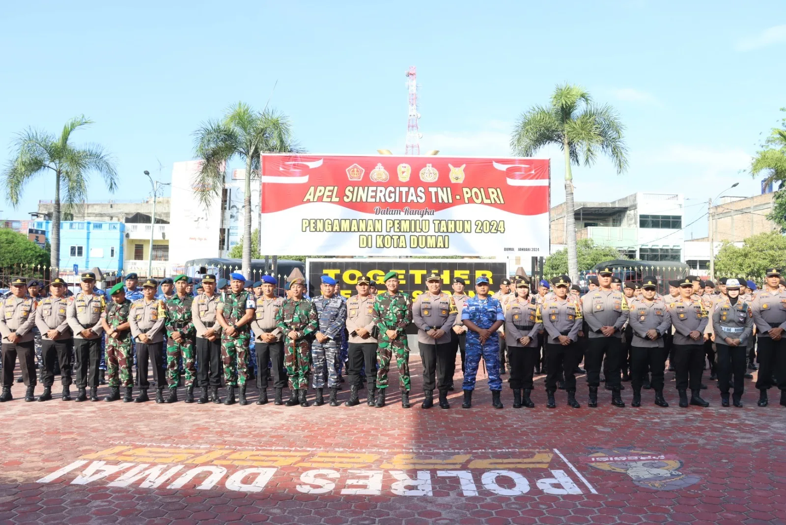 Pantauan dilapangan, bertindak sebagai pimpinan Apel yakni Kapolres Dumai AKBP Dhovan Oktavianton, S.H, S.I.K, M.Si, Danlanal Dumai diwakili Kaur Hartib Dumai Lettu Laut (PM) Faozan, Dandim 0320/Dumai diwakili Kasdim Kodim 0320/Dumai Mayor (Arh) Catur Sopan Permana, Dansat Radar 232 Dumai Letkol (Lek) Rumanto Gunardi, Dan Den Arh Rudal 004 Dumai Kapten (Arh) Heris Adi Ratno, S.S.T.HAN serta Danden Pom AL Dumai, diwakili oleh Dansub Denpom Dumai Kapten (PM) Frist Otto, S.H.