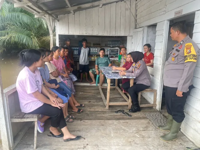 Hadir dalam kegiatan tersebut, Kapolsek Tapung Kompol Nur Syafniati, Wakapolsek AKP Ferry M Fadilla, Panit Samapta, Ipda Asnul Hutagalung, Bhabinkamtibmas Petapahan, Aiptu Masri SH MH serta masyarakat yang terdampak banjir sekitar 10 orang.