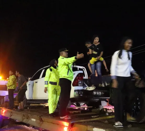 Respon cepat orang nomor satu di Jajaran Polres Pelalawan langsung turun kelapangan bersama personil dengan menggunakan truk ukuran besar atau trado untuk melakukan evakuasi. Dinginnya cuaca malam tidak menyurutkan semangat personil dilapangan dan pada Jumat (12/1/2023) Pukul 01.30 WIB, seluruh penumpang berhasil di evakuasi ke daerah yang lebih aman.