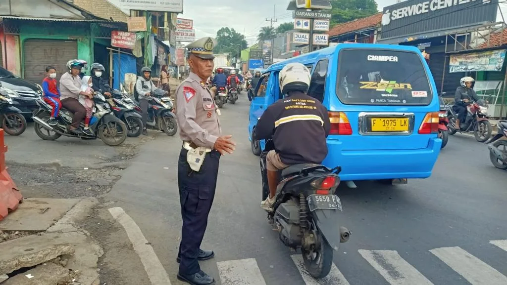 Personil Polsek Ciampea Melakukan Pengaturan Lalu Lintas dan Mengurai kemacetan Dalam Rangka Jaga Kondusifitas Wilayah dan Mengurangi Laka Lantas Sebagai Wujud Pelayanan Masyarakat