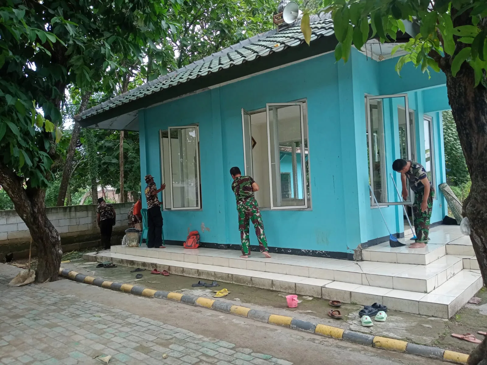 Di lokasi Peltu Mualim menyebut Kegiatan tersebut menunjukkan rasa kepedulian TNI terhadap tempat ibadah,” Ujar Mualim