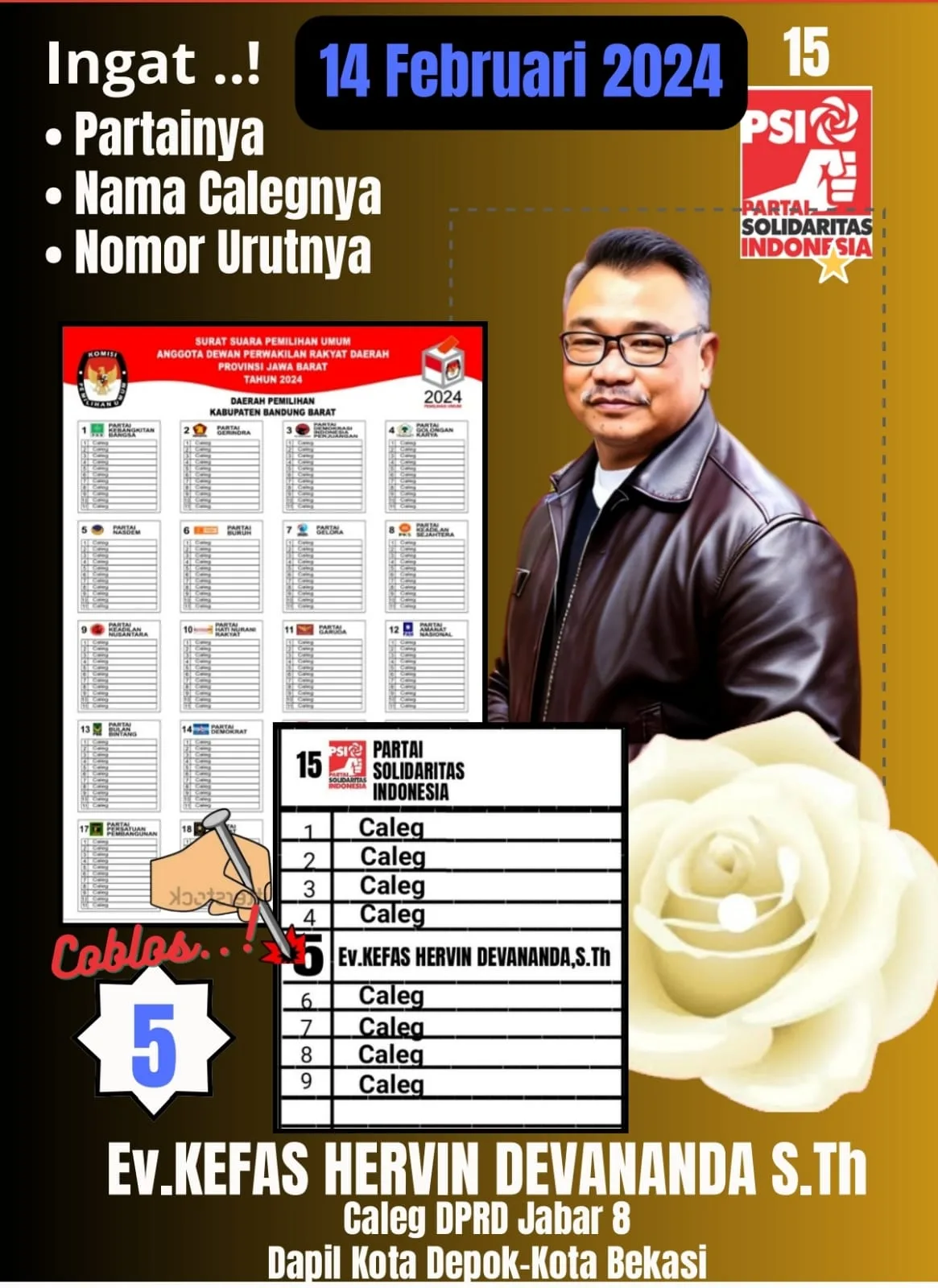 Pria yang disapa dengan Romo Kefas ini kita semua tahu bahwa dirinya memantapkan diri maju sebagai salah satu Caleg yang akan bertanding pada 2024 ,tepatnya Kefas Hervin Devananda, S.Th alias Romo Kefas maju Sebagai Calon legislatif untuk DPRD Propinsi Dapil Jabar VIII Nomer Urut 5 (Lima) dari Partai Solidaritas Indonesia (PSI)