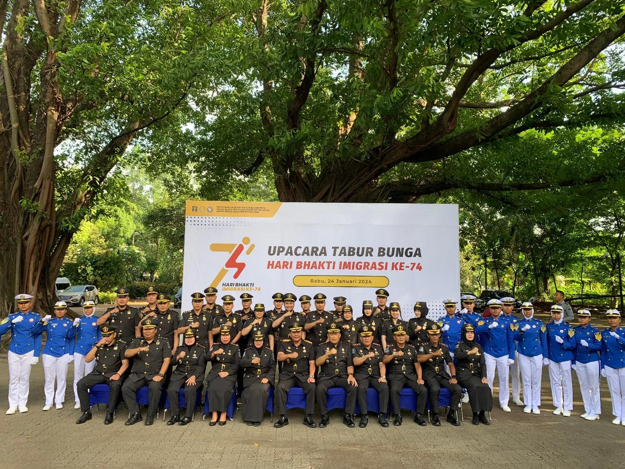Lembaga Pemasyarakatan (Lapas) Kelas IIA Tangerang Kantor Wilayah Kemenkumham Banten menghadiri dan mengikuti giat Upacara Tabur Bunga dalam rangka memperingati Hari Bhakti Imigrasi Ke-74 Tahun 2024, pada Rabu (24/1).