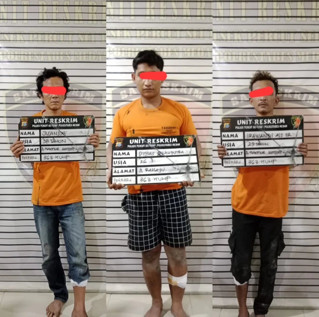 Para pelaku bernama Dimas Syahputra 26 tahun, warga Jalan Rahayu, Desa Sambirejo Timur , Percut Seituan, Juanda, 37 tahun warga Jalan Makmur Pasar 7, Desa Sambirejo serta Irawandi, 29 tahun juga warga Jalan Makmur pasar 7 Sambirejo Timur, Percut Seituan.