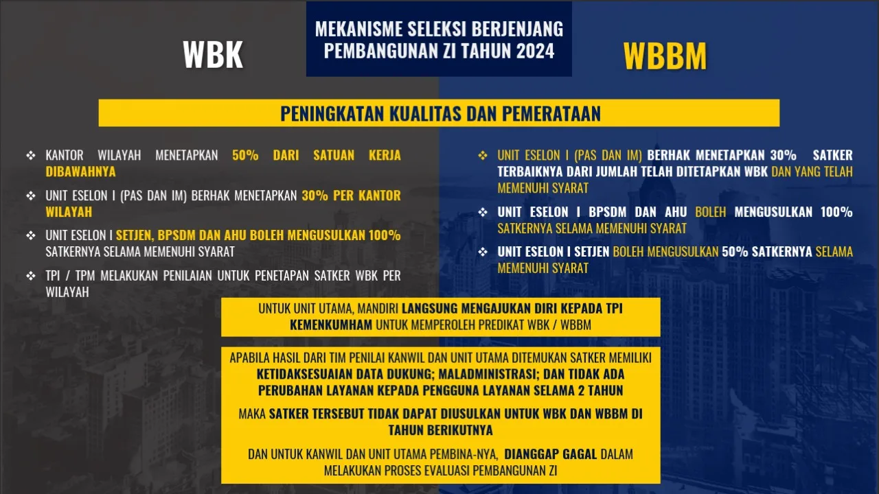 “Selain itu, mekanisme ZI Tahun 2024 ini juga diharapkan dapat mengakomodir pemerataan terhadap satker yang diajukan di masing-masing Kantor Wilayah dan dapat menjadi katalisator peningkatan kualitas satker yang diusulkan,” Ucap Razilu.