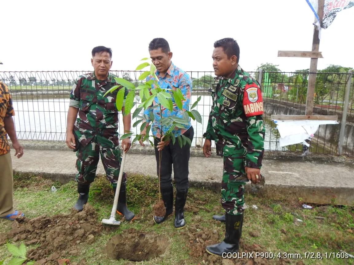 “Sengaja dipilih Pohon Mahoni untuk ditanam disini, karena pohon Mahoni tidak mudah tumbang mengingat struktur kayunya yang kuat, tumbuh lurus ke atas, sehingga sangat cocok” Ujarnya Danramil