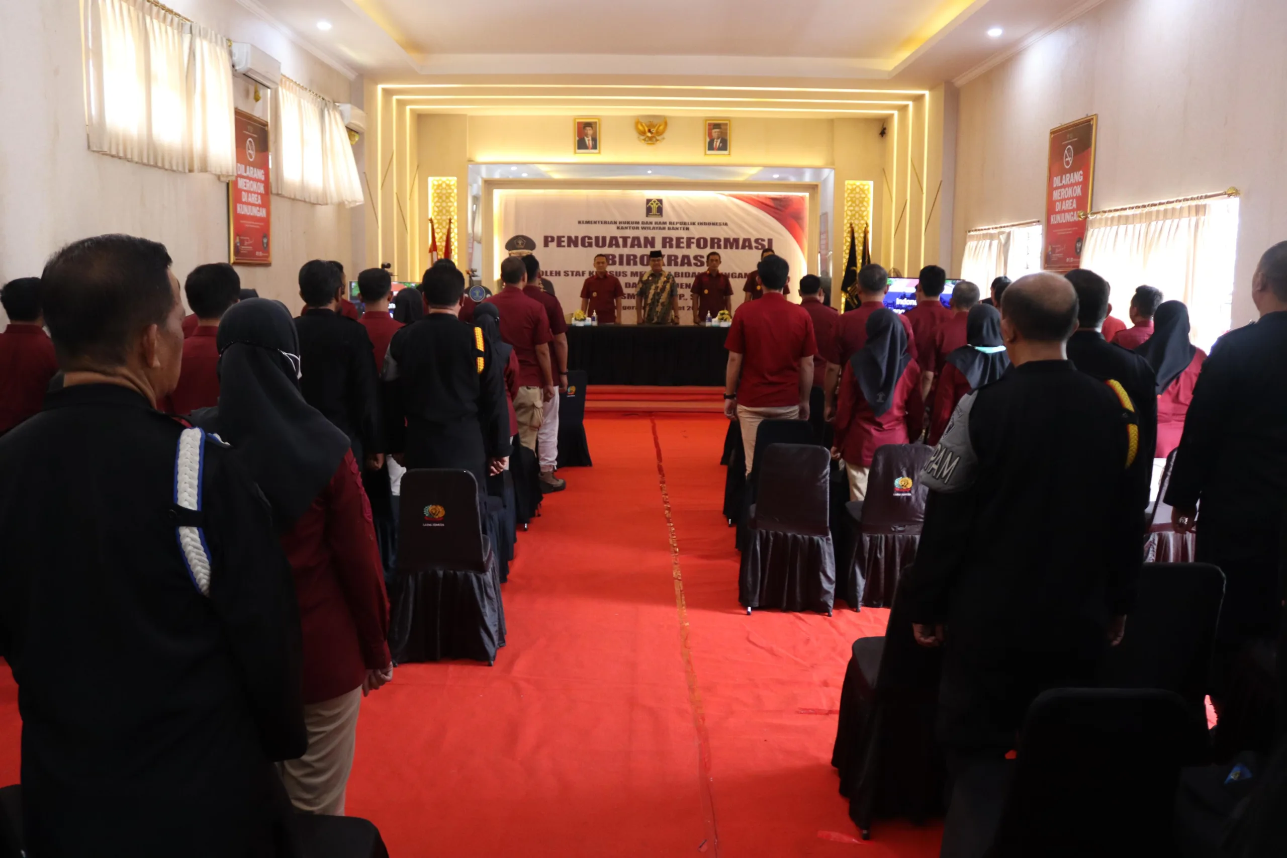 Tangerang – Komitmen melaksanakan pembangunan zona integritas terus digaungkan Lapas Pemuda Kelas IIA Tangerang Kanwil Kemenkumham Banten, kali ini Staf Khusus Menteri Hukum dan HAM Bidang Pengamanan dan Intelijen, Krismono yang melaksanakan penguatan reformasi birokrasi.