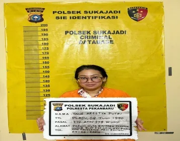 PEKANBARU – Seorang wanita cantik berinisial YAP alias Yang (33) diamankan polisi lantaran menipu seorang pedagang emas senilai Rp3,7 Miliar. Dalam melancarkan aksinya, pelaku berpura-pura menawarkan emas antam 24 karat untuk dijual kepada korban.