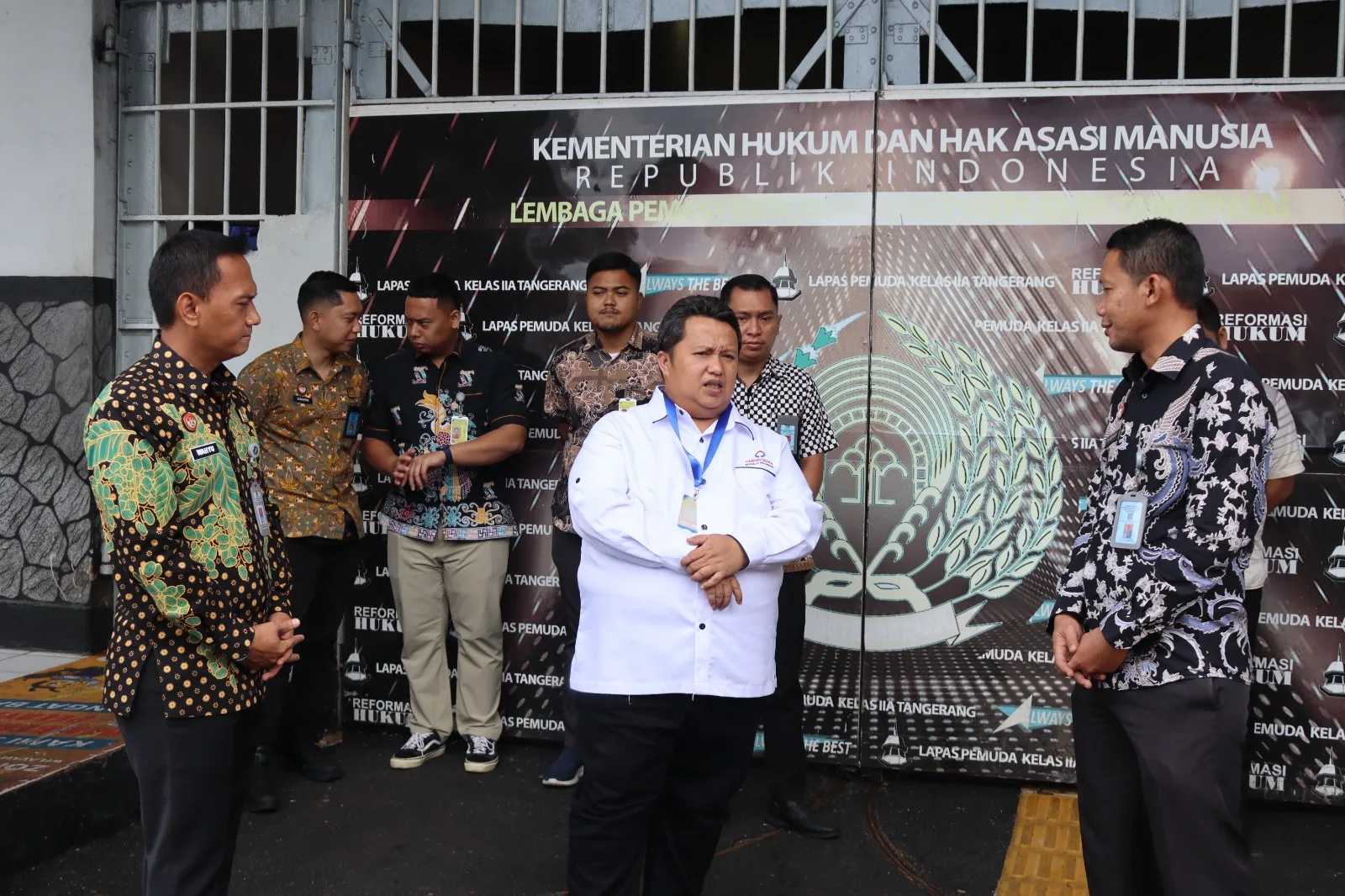 Fadli Afriadi, Kepala Ombudsman RI Perwakilan Banten beserta tim disambut langsung oleh Kepala Lapas Pemuda Kelas IIA Tangerang bersama jajaran struktural. Tim Ombudsman diajak berkeliling meninjau pelayanan dan pembinaan di Lapas Pemuda Kelas IIA Tangerang mulai dari Posyandu Publik dan Pos Yankomas, Bale Baca, Dapur Sehat, Kampus Kehidupan, hingga Galeri Kegiatan Kerja yang merupakan pusat pembinaan kemandirian bagi warga binaan pemasyarakatan antara lain, batik ecoprint, sablon, bordir, konveksi, laundry, dan kerajinan tangan berupa celengan.