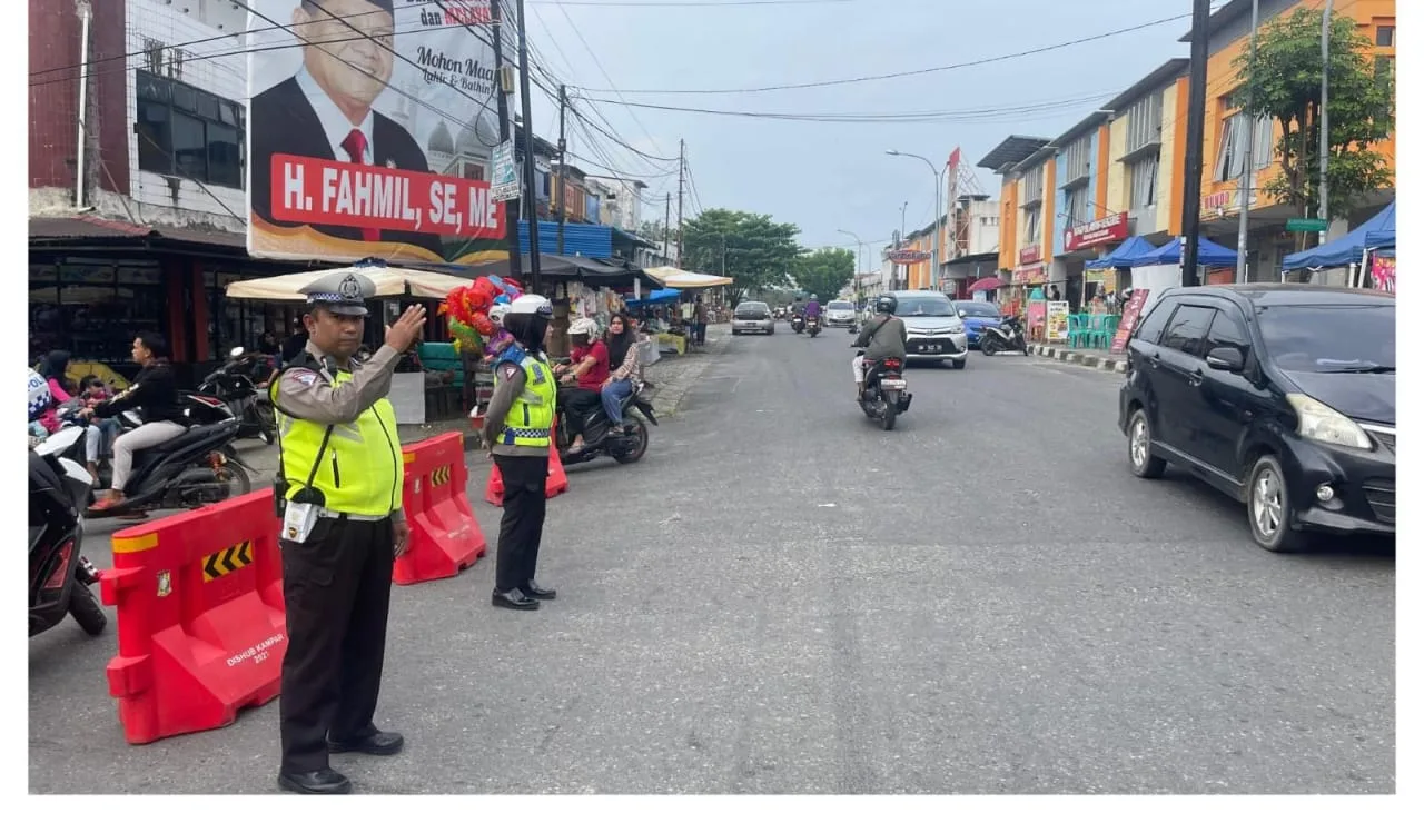 Satlantas Polres Kampar Laksanakan Gatur Sore dan PAM Lalin Pasar Ramadhan