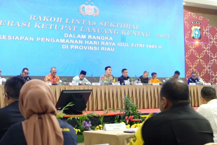 PEKANBARU – Polda Riau menggelar rapat koordinasi lintas sektoral dalam rangka kesiapan pengamanan Hari Raya Idul Fitri 1445 H di Provinsi Riau. Rapat tersebut diselenggarakan di Balroom Hotel Pangeran Pekanbaru dan dihadiri oleh PJ Gubernur Riau SF Haryanto serta stakeholder terkait, Kamis (28/3/2024).