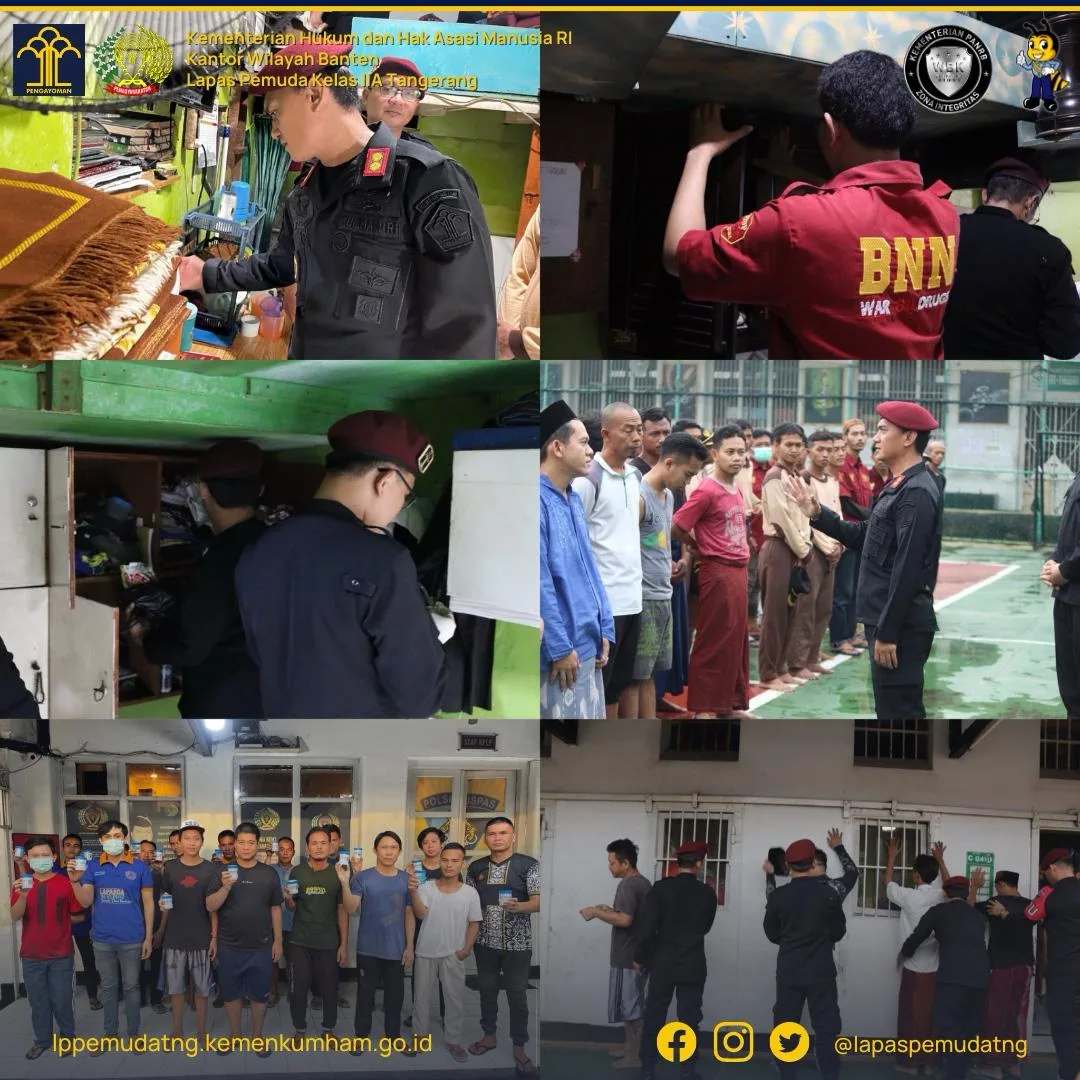 Bersama Badan Narkotika Nasional (BNN) Kota Tangerang, Personel Polres Metro Tangerang Kota dan Koramil Tangerang, Lapas Pemuda Kelas IIA Tangerang Kanwil Kemenkumham Banten melaksanakan razia serentak pada 2 (dua) blok hunian yang terdiri dari 20 kamar hunian. Kegiatan razia ini merupakaian rangkaian Apel Siaga 3+1 (Berantas Halinar) dalam rangka peringatan Hari Bhakti Pemasyarakatan Ke-60.