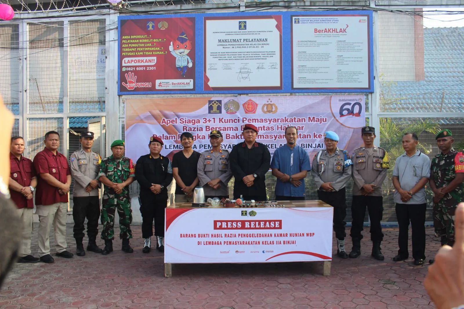 Lembaga Pemasyarakatan (Lapas) Kelas IIA Binjai gelar razia gabungan bersama Aparat Penegak Hukum (APH) lainnya, Kegiatan ini merupakan Rangkaian Kegiatan Peringatan Hari Bakti Pemasyarakatan Ke-60 Tahun 2024 dengan tema “Pemasyarakatan PASTI Berdampak”. Jum’at (05/04/2024)