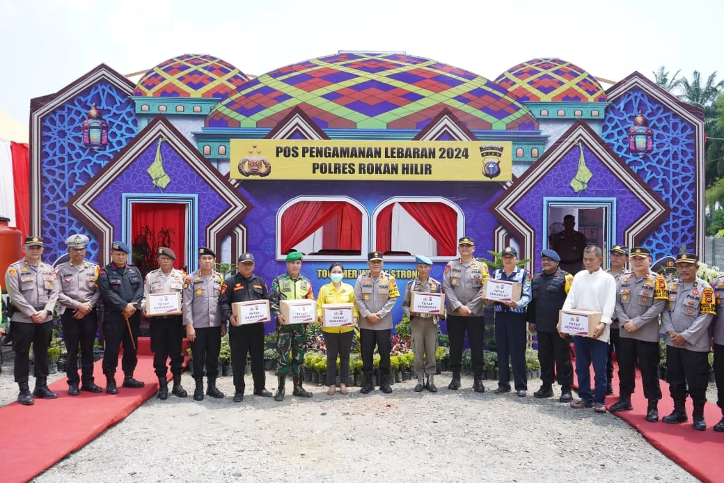 Selanjutnya Wakapolda Riau beserta rombongan menyerah bantuan tali asih kepada petugas yang melakukan pengamanan di Posko Terpadu Ops Ketupat Lancang Kuning Polres Rohil.