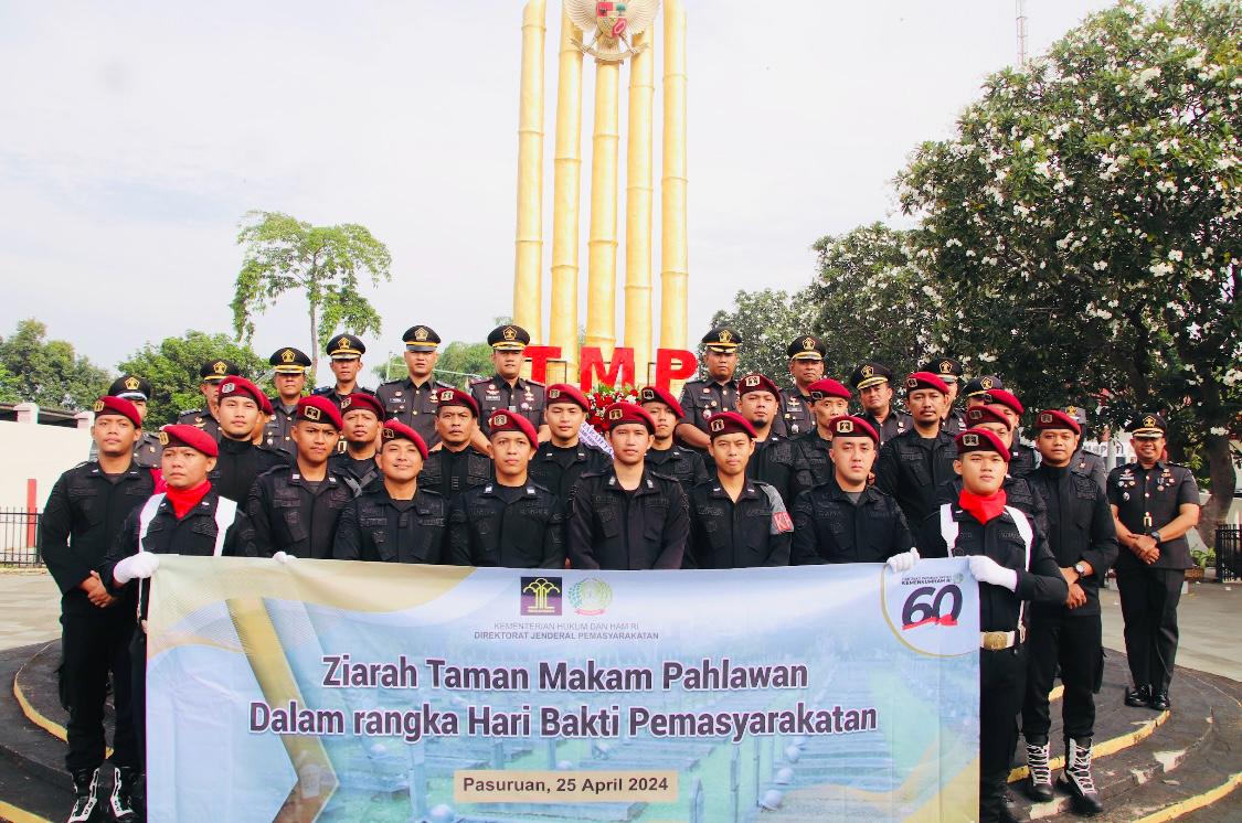 Pasuruan Kota – Peringatan Hari Bakti Pemasyarakatan ke-60 Tahun 2024 dengan tema “Pemasyarakatan Pasti Berdampak” Lapas Kelas IIB Pasuruan Kanwil Kemenkumham Jatim melalui nota dinas mengajak seluruh jajarannya untuk mengikuti upacara tabur bunga di Taman Makam Pahlawan Kota Pasuruan. Rabu, (24/04)
