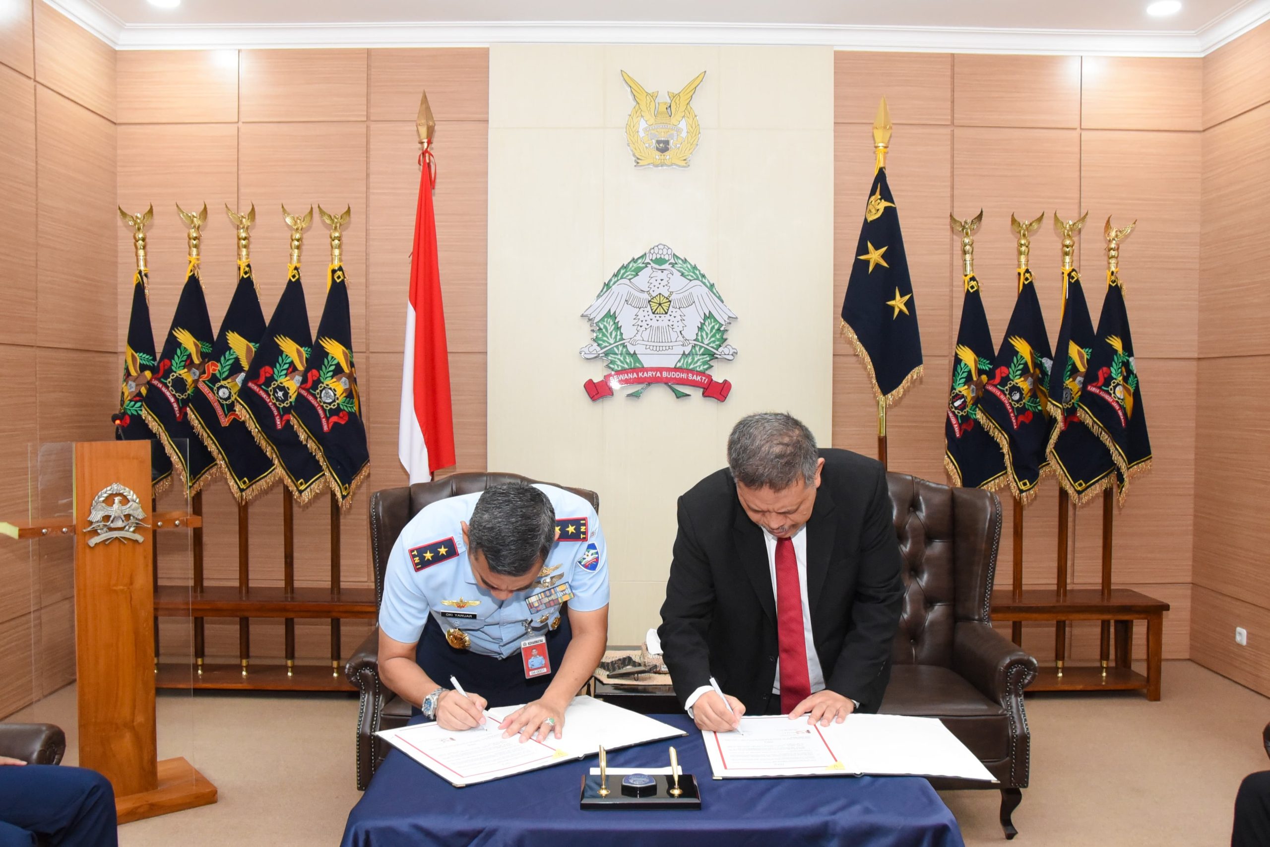 Bandung – Penandatanganan perjanjian kerja sama antara Koharmatau dengan PT Nusantara Turbine dan Propulsi (NTP) yang berlangsung di ruang Courtessy Call Makoharmatau, Lanud Husein Sastranegara, Bandung, Selasa (30/04/2024).