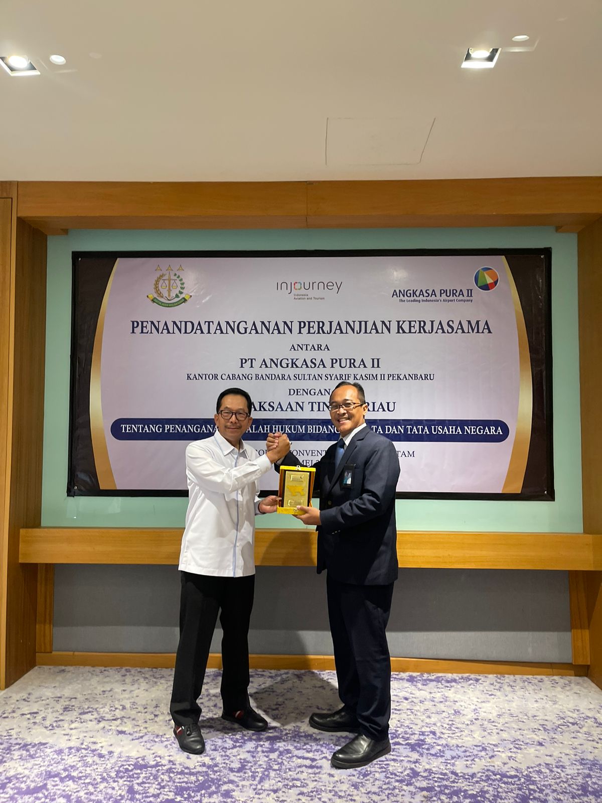 Dalam sambutannya GM Angkasa Pura II mengucapkan terima kasih kepada seluruh pihak yang telah berkontribusi atas terselenggaranya kegiatan Penandatanganan Perjanjian Kerjasama antara PT. Angkasa Pura II dengan Kejaksaan Tinggi Riau dalam mengoptimalkan pelaksanaan tugas dan fungsi dari para Pihak dalam menangani permasalahan Hukum Bidang Perdata dan Tata Usaha Negara sehingga diharapkan dapat meningkatkan efektifitas terhadap penanganan dan penyelesaian masalah hukum bidang perdata dan tata usaha negara yang dihadapi oleh PT. Angkasa Pura II.