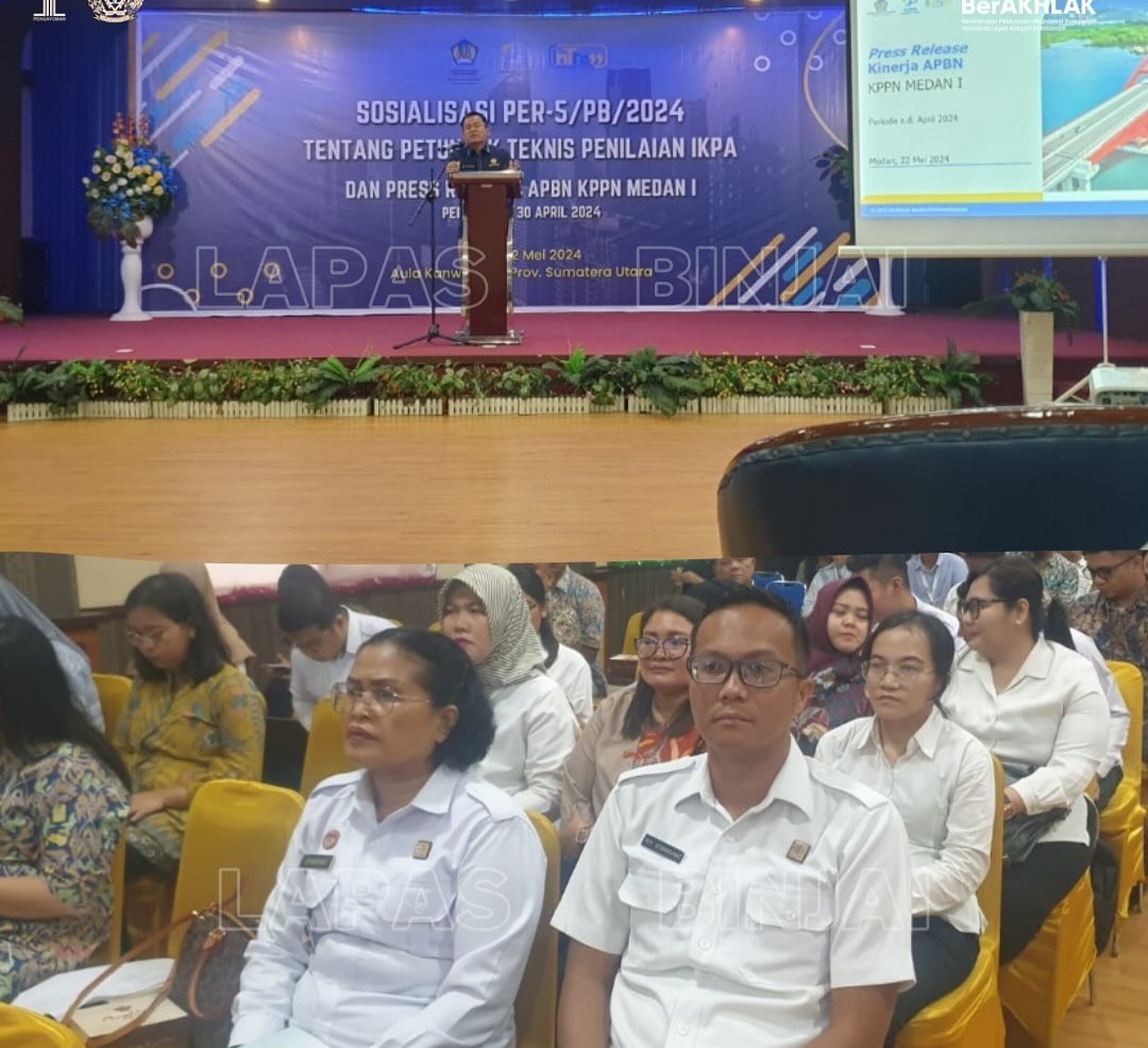 Lembaga Pemasyarakatan Kelas IIA Binjai melalui Kasubbag Tata Usaha, Syamsinar Simatupang yang juga Sebagai PPK dan Bendahara, Roy Martin Sitanggang turut hadir secara langsung mengikuti sosialisasi PER-5/PB/2024 tentang Petunjuk Teknis Penilaian Indikator Kinerja Pelaksanaan Anggaran Belanja Kementerian Negara/Lembaga, Rabu (22/05/2024)