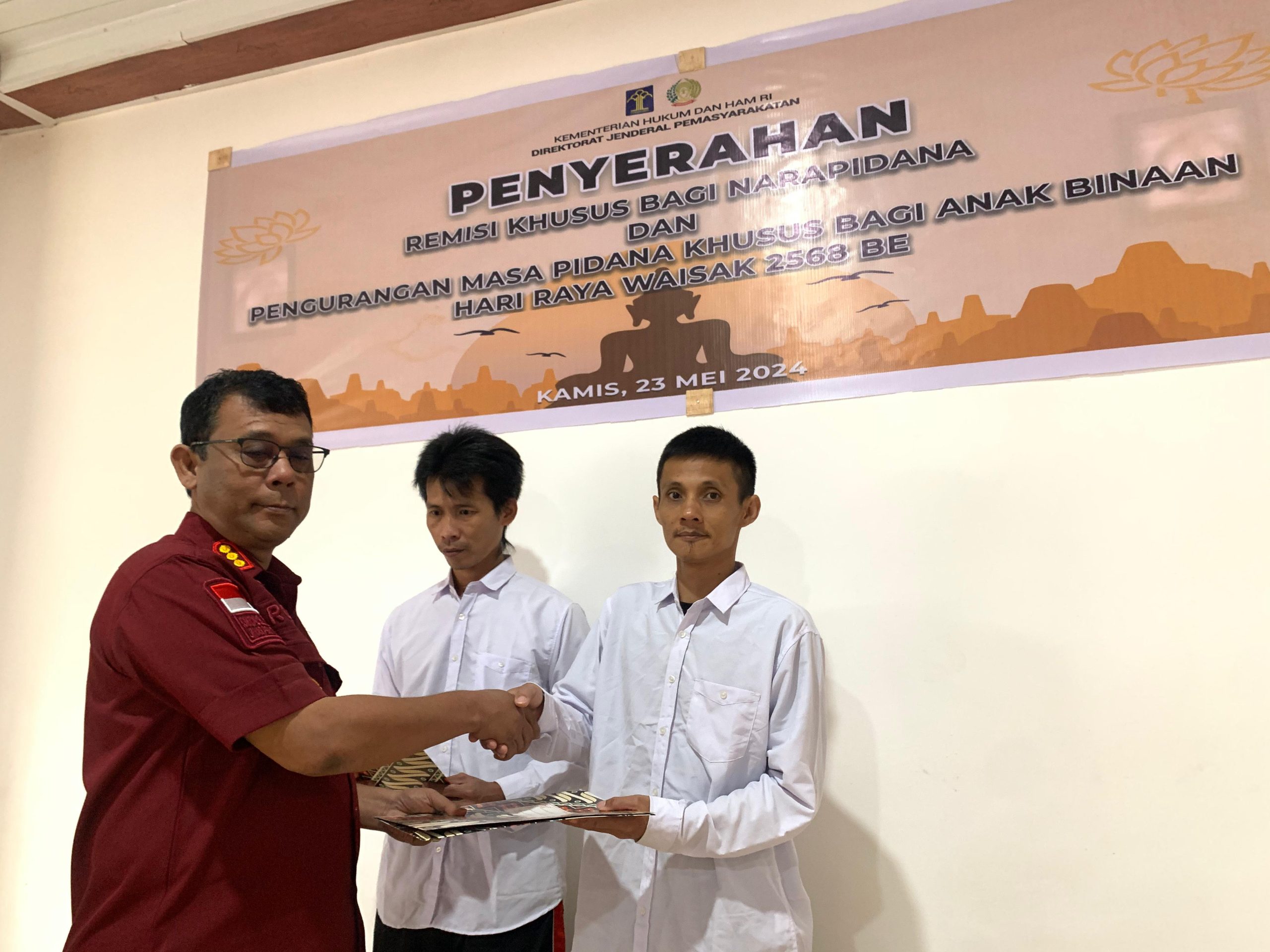 Kegiatan penyerahan remisi Waisak itu, iikuti juga oleh Kasi Binadik Makson Simatupang, Kasubsi Registrasi Normin dan pejabat struktural lainnya.