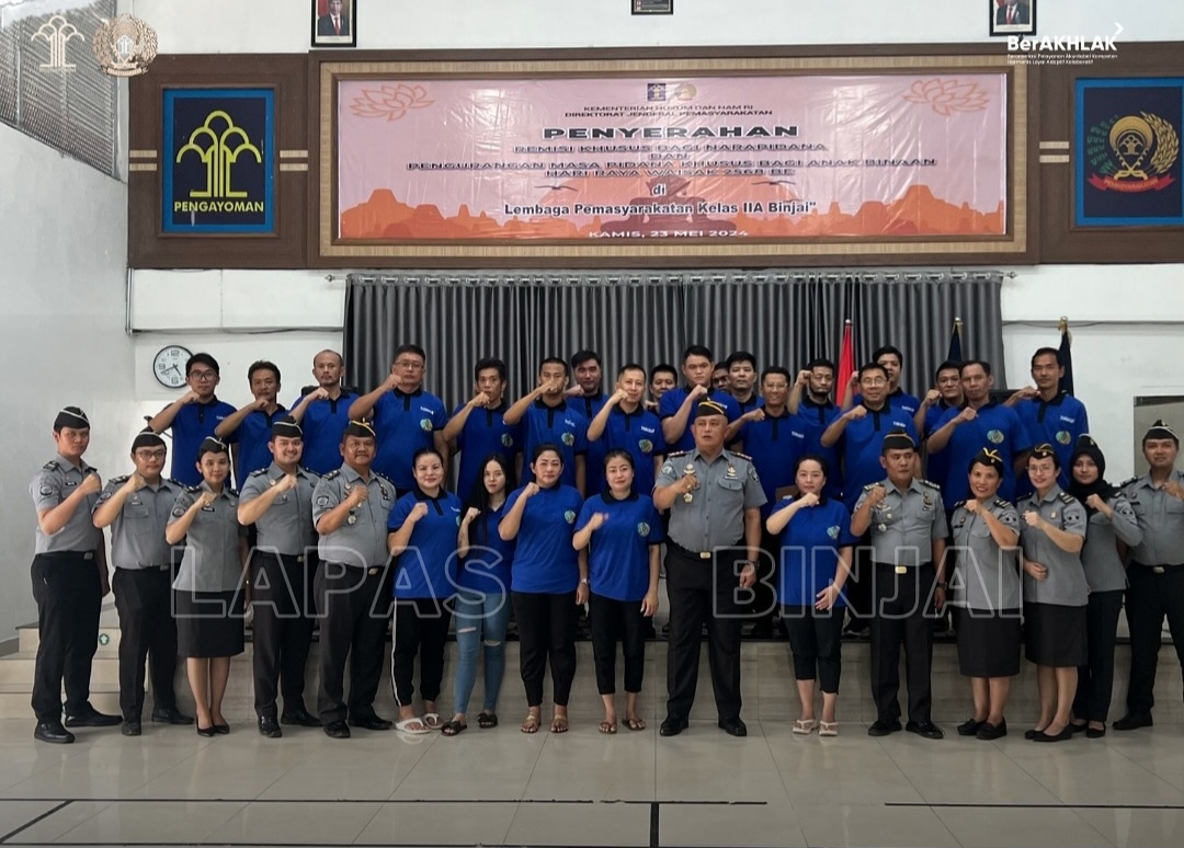 Penyerahan SK Remisi Khusus Hari Raya Waisak Tahun 2024 diberikan kepada 28 orang orang Warga Binaan Lembaga Pemasyarakatan Kelas IIA Binjai yang beragama Buddha dan 11 orang langsung bebas pada hari Kamis (23/05/2024) bertempat di Aula Lapas Binjai.