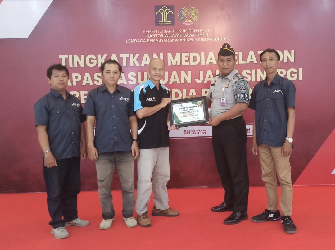 Institusi Pelayanan Terinovatif 2024, Lapas Pasuruan Terima Piagam Penghargaan dari AJPB (Aliansi Jurnalis Pasuruan Bersatu)