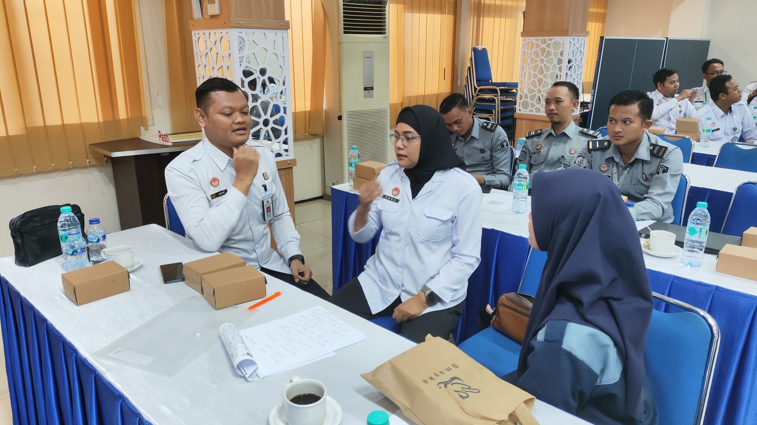 Malang – Rabu (05/06/2024) Rutan Kelas II B Bangil Kanwil Kemenkumham Jatim mengikuti kegiatan in house training Pelatihan Bahasa Isyarat yang diselenggarakan di Kantor Imigrasi Kelas I TPI Malang. Pelatihan ini merupakan bagian dari upaya peningkatan pelayanan publik berbasis Hak Asasi Manusia (HAM). Kegiatan ini diikuti oleh berbagai instansi dalam lingkungan Kementerian Hukum dan HAM untuk meningkatkan kemampuan komunikasi dengan penyandang disabilitas.