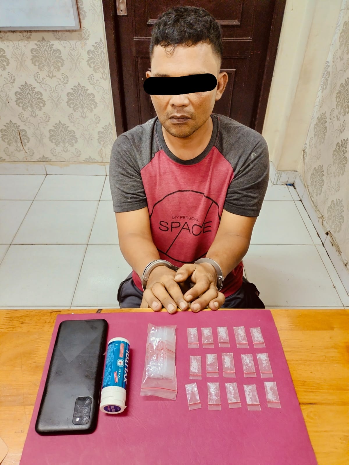 MR(48) diamankan Satres Narkoba Polres Siak dengan barang bukti 15 (lima belas) paket Narkotika jenis shabu dengan berat kotor 2,59 (dua koma lima puluh sembilan) gram.