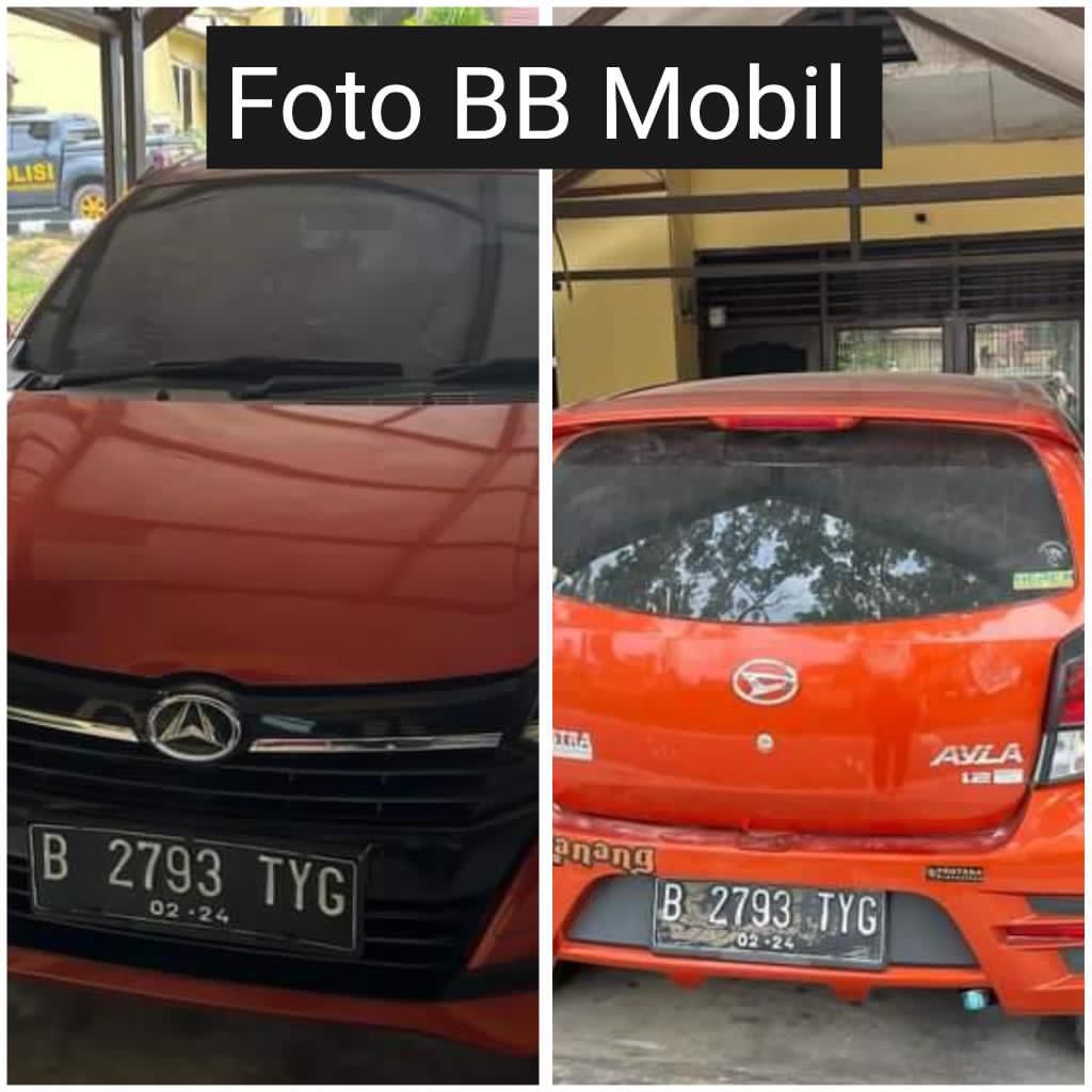 Uang tunai Rp 100.000,_ 1 buah plastik asoy warna biru yang di balut lakban warna hitam, 1 buah alat hisap berupa bong dan 1 unit mobil AYLA warna Orange.