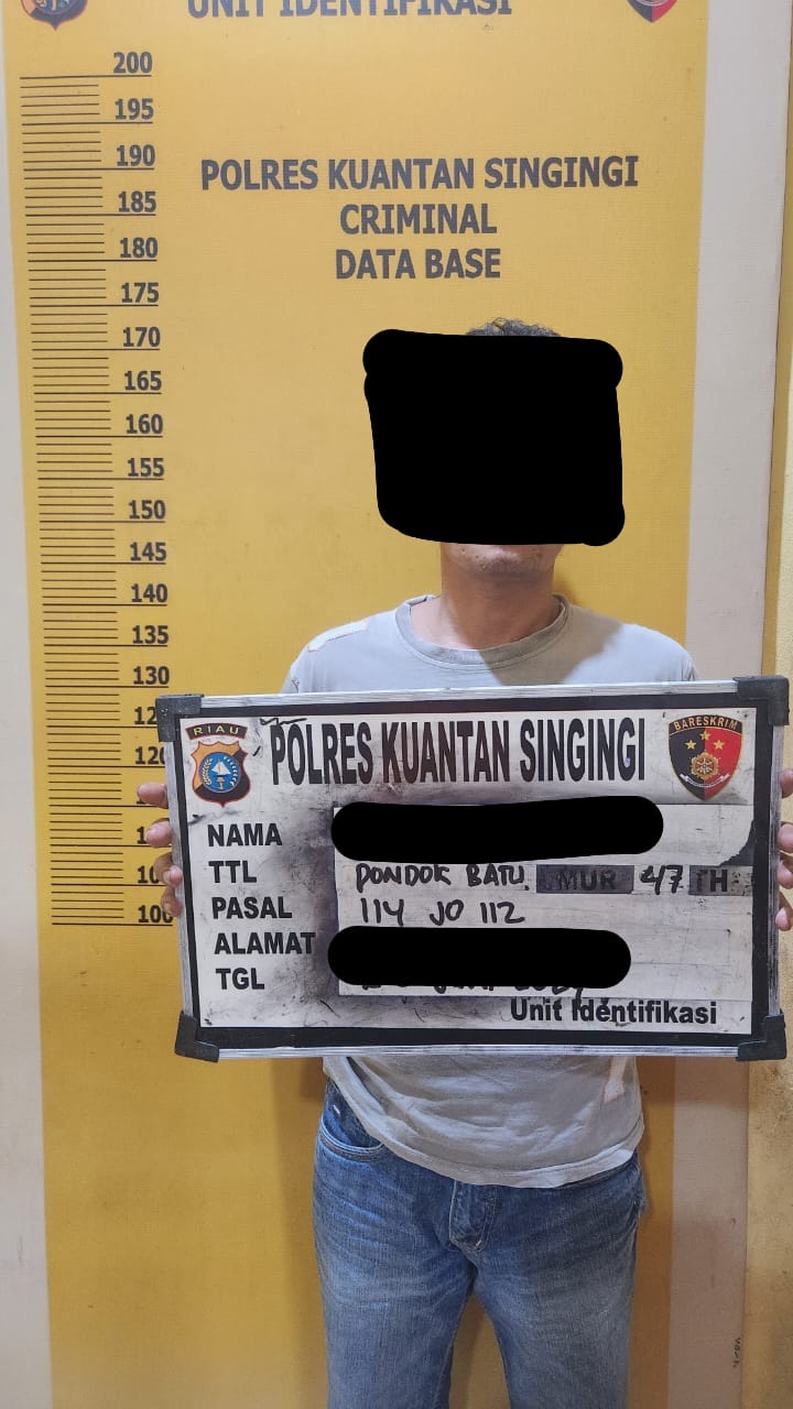 Kapolres Kuansing AKBP Pangucap Priyo Soegito, S.I.K, M.H, melalui Kasat Resnarkoba Polres Kuansing AKP Novris H Simanjuntak, S.H.,M.H, mengatakan, “Penangkapan Tersangka AP (25) Sekira pukul 18.00 WIB, Tim Mata Elang melakukan penyelidikan di sekitar Desa Bukit Raya. Pada pukul 20.30 WIB, tim melakukan penangkapan terhadap tersangka AP (25) yang duduk di depan rumahnya di Desa Bukit Raya. Saat penggeledahan, ditemukan satu bungkus rokok merk Niko yang di dalamnya berisi satu paket plastik klip yang diduga berisi narkotika jenis shabu di bawah tempat duduk tersangka,” jelas Kasat.