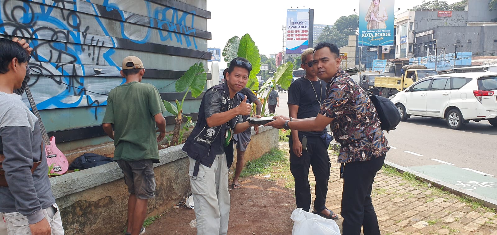 ” Alhamdulillah hari ini, kami distribusikan nasi box Jum’at Berkah di tiga lokasi berbeda dengan sasaran saudara kita para pengamanan jalanan hingga tukang becak. Lokasi pertama di Lampu Merah (Lamer) Jambu Dua, Tukang Becak di depan Kejaksaan Negeri Kota Bogor dan pengamen di Lampu Merah (Lamer) Baranangsiang,” paparnya.