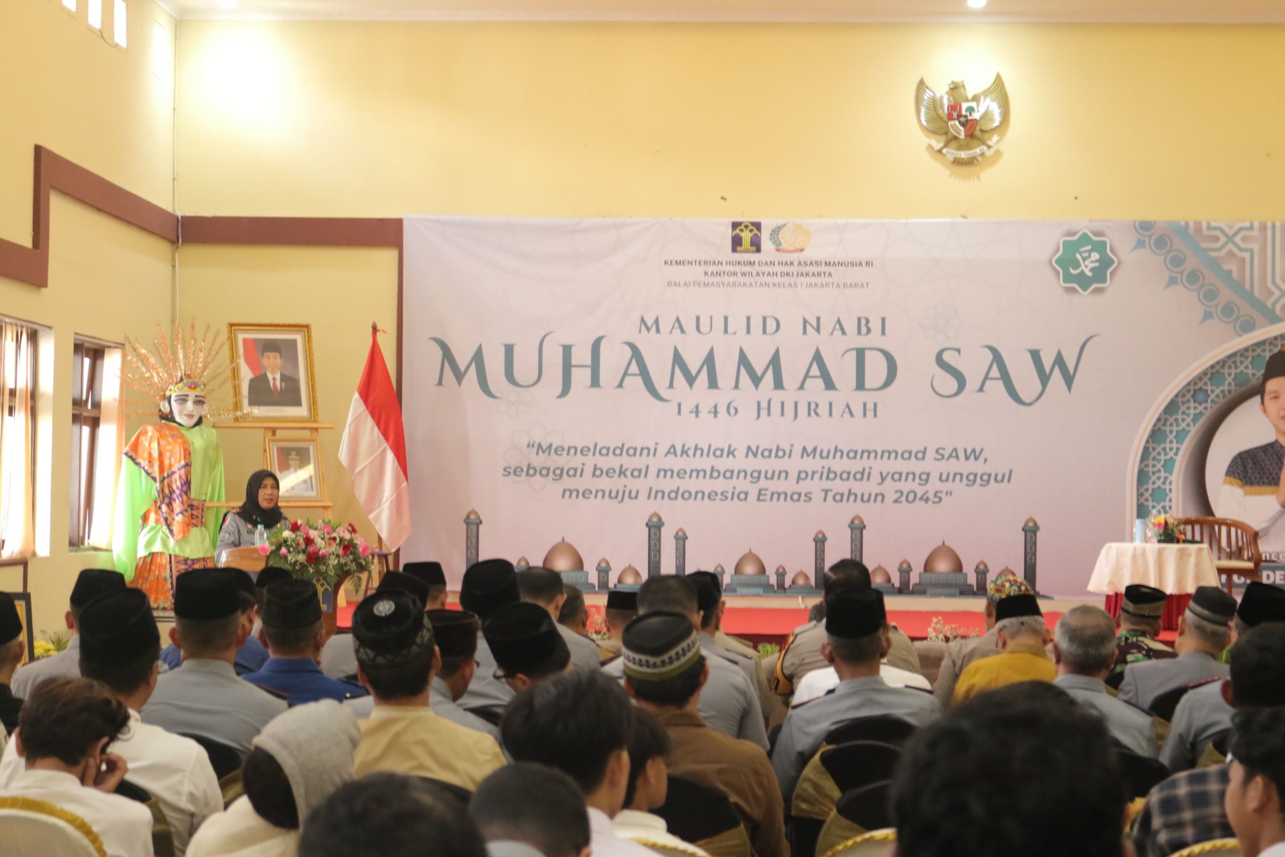Jakarta Barat – Balai Pemasyarakatan Kelas I Jakarta Barat menggelar Maulid Nabi Muhammad SAW 1446 Hijriah di Gedung P3PAUD Dikmas DKI Jakarta di Kebon Jeruk, Jakarta Barat dengan tema “Meneladani Akhlak Nabi Muhammad SAW, sebagai Bekal Membangun Pribadi yang Unggul Menuju Indonesia Emas Tahun 2045”