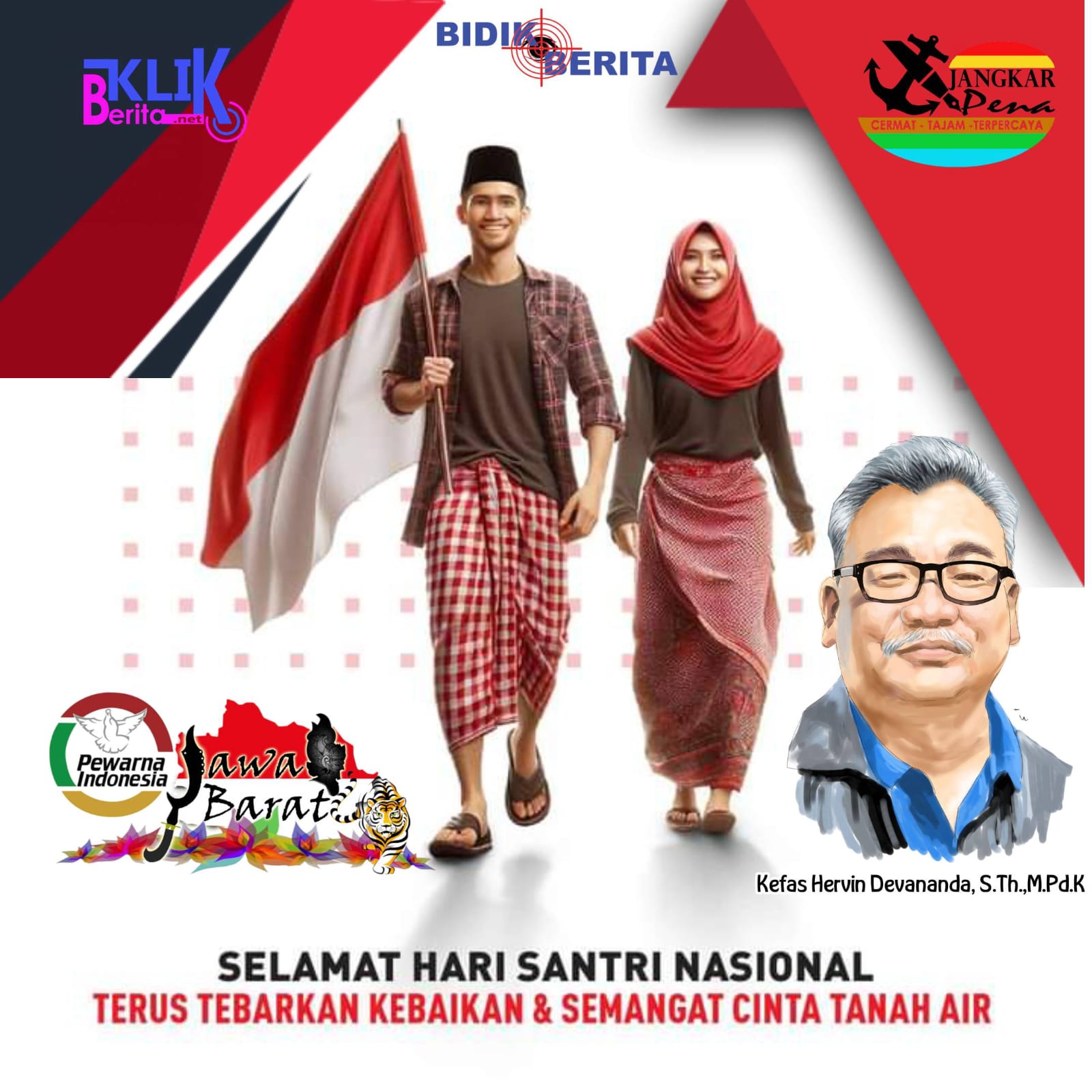 Bogor – pada tanggal 22 Oktober semenjak 2015 kita setiap tahun memperingati Hari Santri, keputusan itu tertuang dalam Kepres RI Nomor 22 Tahun 2015 yang ditanda tangani oleh Presiden Jokowi, Ketua Pewarna Indonesia Propinsi Jawa Barat, Kefas Hervin Devananda.S.Th., M.Pd.K mengatakan” peringatan Hari Santri Nasional yang dimana setiap tanggal 22 Oktober 2024 ini adalah mengingatkan kita tentang peran perjuangan para santri di tahun 1945 yang berjuang mempertahankan kemerdekaan Indonesia. ” Ujarnya Rabu 23 Oktober 2024.