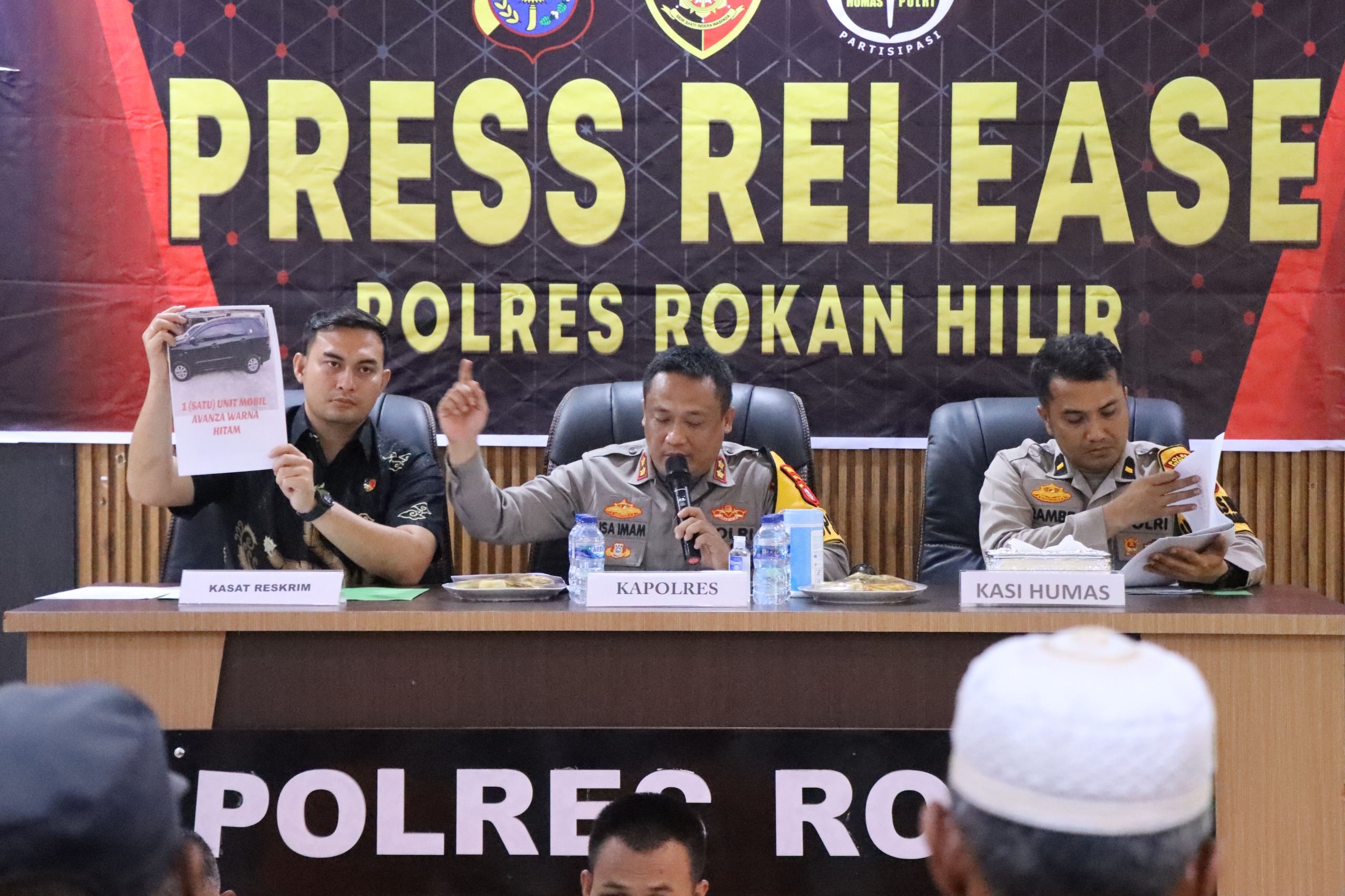 Press Release Ungkap Kasus Pencurian Mobil, Kapolres Rohil: Kami Tangkap 3 Tersangka Spesialis Pencuri Mobil Lintas Kabupaten di 6 TKP