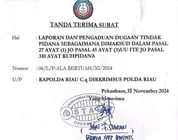 Sebagai informasi, laporan yang dimaksud diantarkan oleh Tim Kuasa Hukum Gicella ke Polda Riau pada Sabtu 23 November 2024.