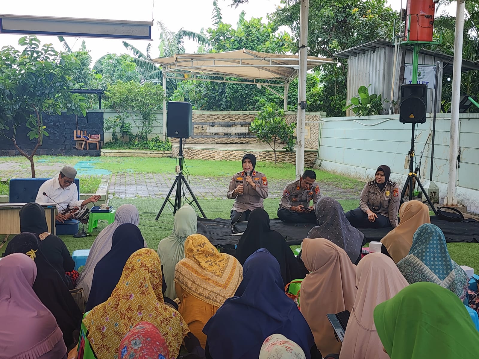 Kegiatan ini dihadiri langsung oleh Kasat Binmas Polres Metro Tangerang Kota, Kompol Triyani, didampingi oleh Wakasat Binmas, AKP Haerudin, beserta anggota Satuan Binmas lainnya. Dalam sambutannya, Kompol Triyani menyampaikan pentingnya menjaga kondusivitas pasca pemilihan.