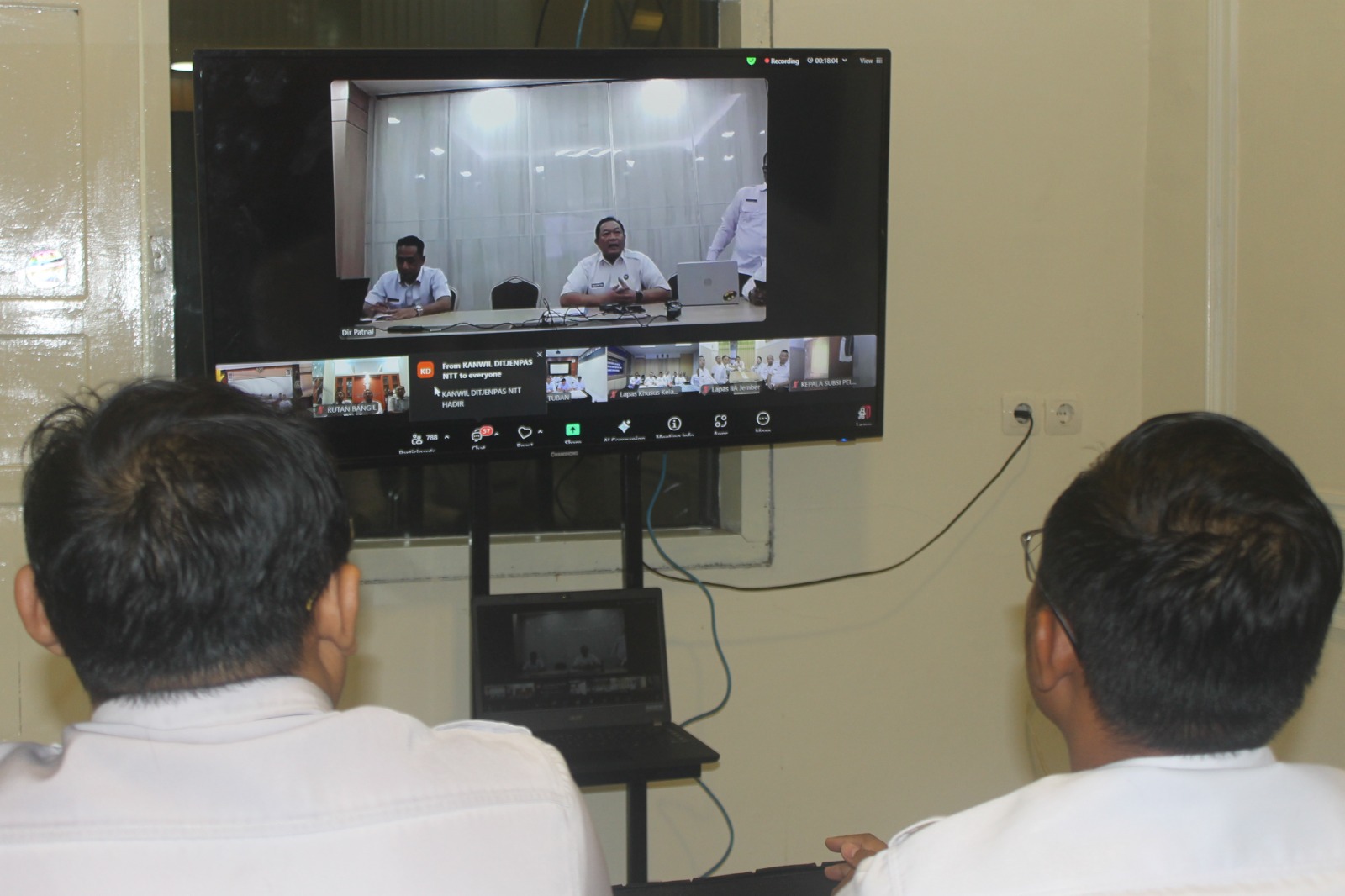 Pasuruan – Rumah Tahanan Negara (Rutan) Kelas IIB Bangil mengikuti Zoom Meeting sosialisasi yang diselenggarakan oleh Direktorat Jenderal Pemasyarakatan (Ditjenpas) terkait Pengawasan Internal Terhadap Potensi Pelanggaran Petugas Pada Satuan Kerja Pemasyarakatan, Rabu (19/03). Kegiatan ini diikuti oleh seluruh Kepala Kantor Wilayah, Kepala Lapas/Rutan, serta jajaran pemasyarakatan di seluruh Indonesia.