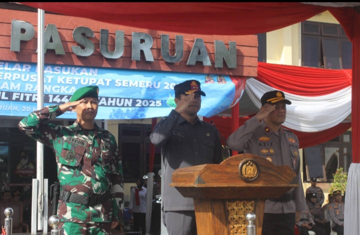 Sekda Kabupaten Pasuruan, Yudha Triwidya Sasongko, bertindak sebagai Pimpinan Apel dan membacakan amanat Kapolri yang berisi arahan terkait teknis pengamanan arus mudik dan arus balik Idul Fitri 1446 H. Dalam amanatnya, ia menekankan pentingnya sinergi antara seluruh instansi untuk memastikan keamanan dan kelancaran lalu lintas selama masa libur Lebaran. “Operasi Ketupat Semeru ini merupakan bentuk kesiapan kita dalam memberikan pelayanan terbaik bagi masyarakat, terutama dalam menjaga ketertiban dan keamanan selama arus mudik dan arus balik,” ujar Yudha.