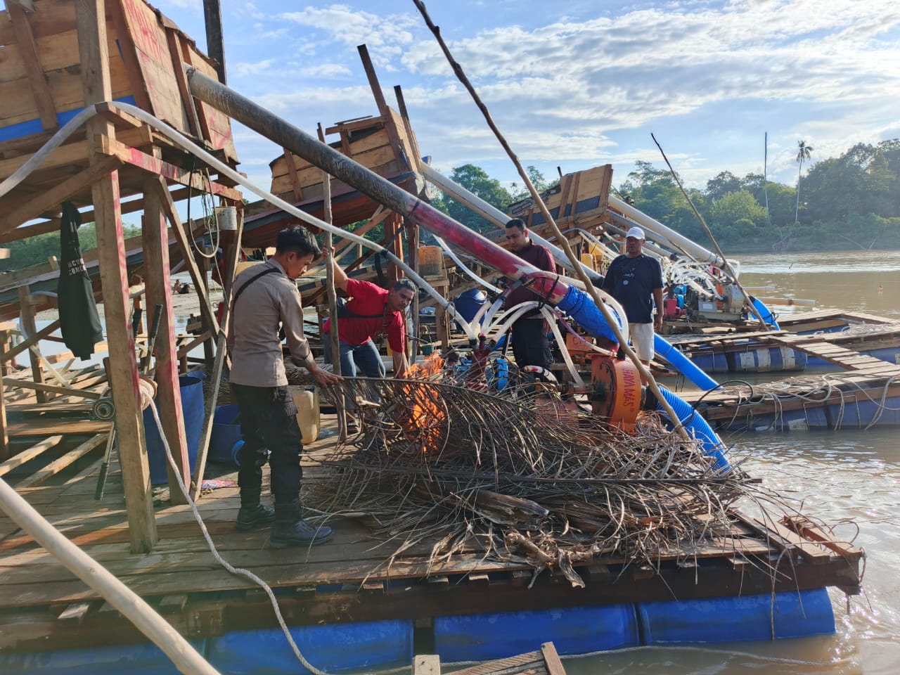 Tanpa kompromi, tim langsung mengambil tindakan tegas dengan merusak dan membakar seluruh rakit tersebut di tempat. Hal ini dilakukan sebagai upaya pencegahan agar peralatan tersebut tidak dapat digunakan kembali untuk kegiatan ilegal yang sama. Meskipun tidak ada pelaku yang berhasil diamankan, tindakan pemusnahan tersebut menjadi sinyal jelas bahwa kepolisian tidak memberikan toleransi terhadap segala bentuk kegiatan tambang ilegal.