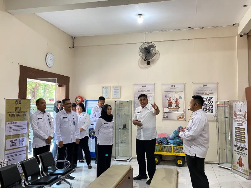Surakarta – Rutan Kelas I Surakarta Kantor Wilayah Direktorat Jenderal Pemasyarakatan Jawa Tengah menerima kunjungan kerja dari Asisten Deputi Koordinasi Strategi Pelayanan Pemasyarakatan, Dwi Nastiti beserta rombongan, Selasa (22/07). Kunjungan ini diawali dengan peninjauan langsung ke Ruang Pelayanan Terpadu Satu Pintu (PTSP) untuk melihat secara langsung bagaimana pelayanan kepada masyarakat dilaksanakan di Rutan Surakarta. Karutan Surakarta memimpin langsung jalannya peninjauan tersebut.