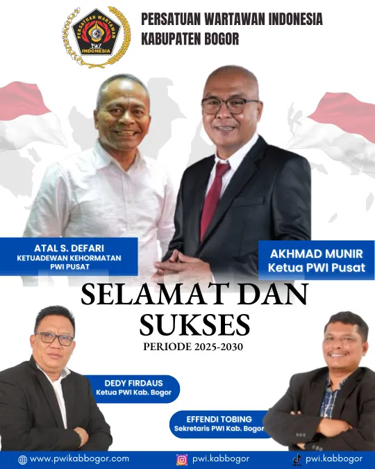 Bogor – Ketua Persatuan Wartawan Indonesia (PWI) Kabupaten Bogor, Dedy Firdaus, menyampaikan ucapan selamat kepada Akhmad Munir yang resmi terpilih sebagai Ketua Umum PWI periode 2025-2030.