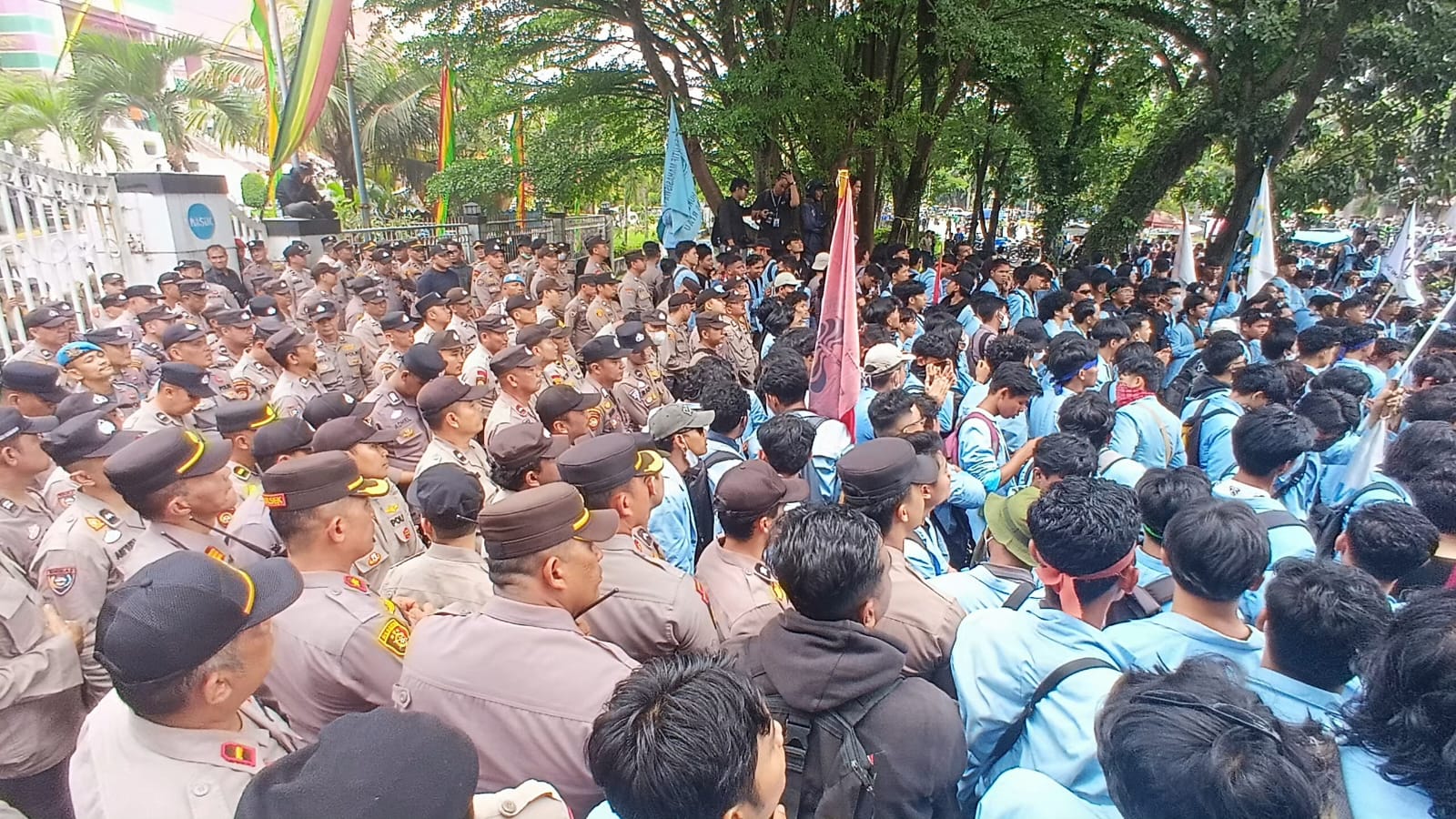 Demo yang digelar di depan gedung DPRD Provinsi Riau mendapatkan pengamanan dari Polda Riau dan jajaran Polresta Pekanbaru.